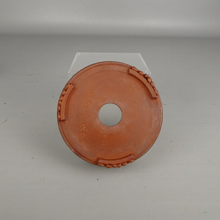 【中古】 盆栽鉢 泥珠 小鉢 長辺 約 8.4cm 丸鉢 泥鉢 雲足 釘彫 現品 中古鉢 品名泥珠...