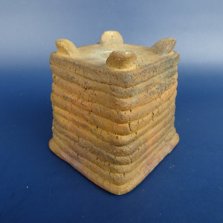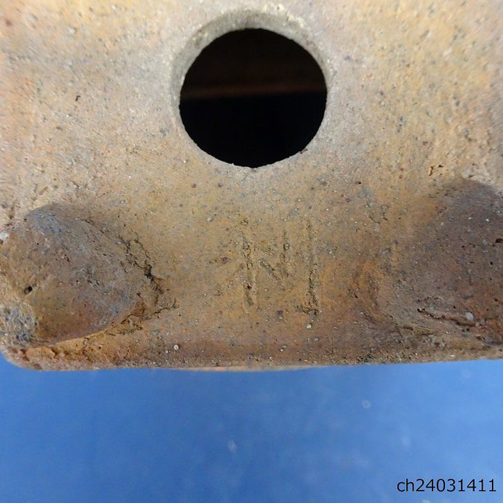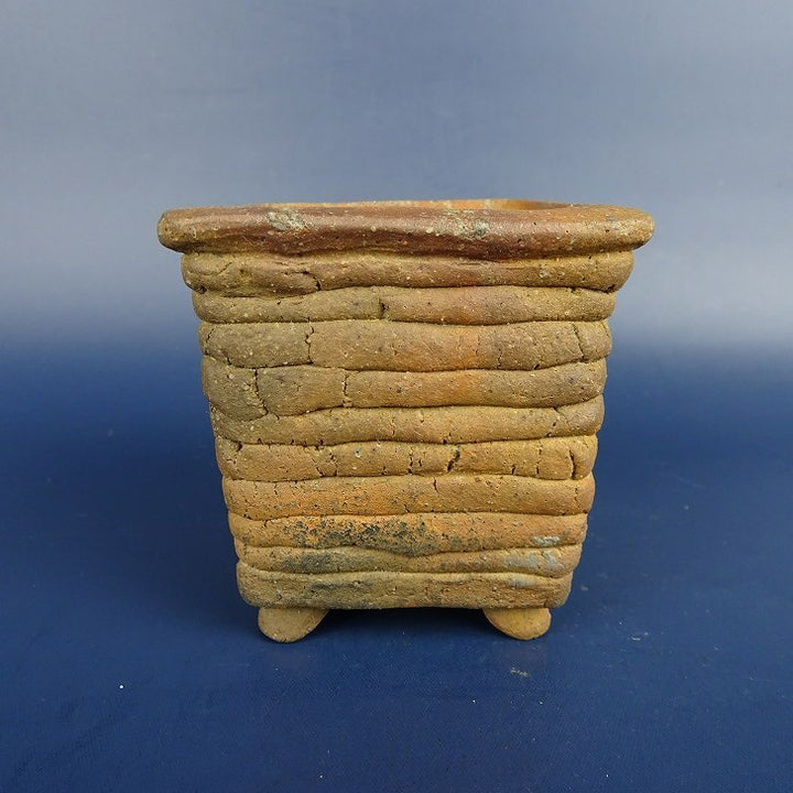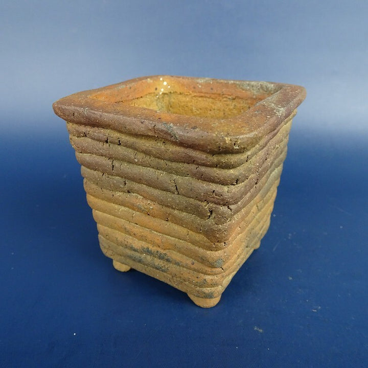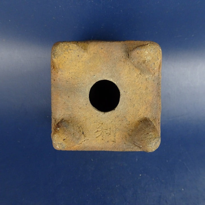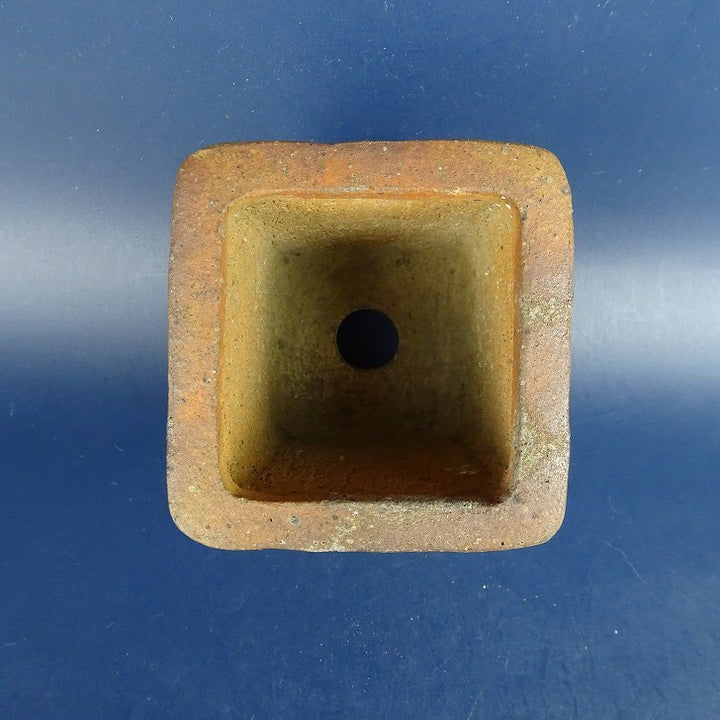 中古盆栽鉢 清水 利重 小鉢 長辺 約6.5cm 正方鉢 外縁 焼締め 泥物 中古鉢 c1198407888