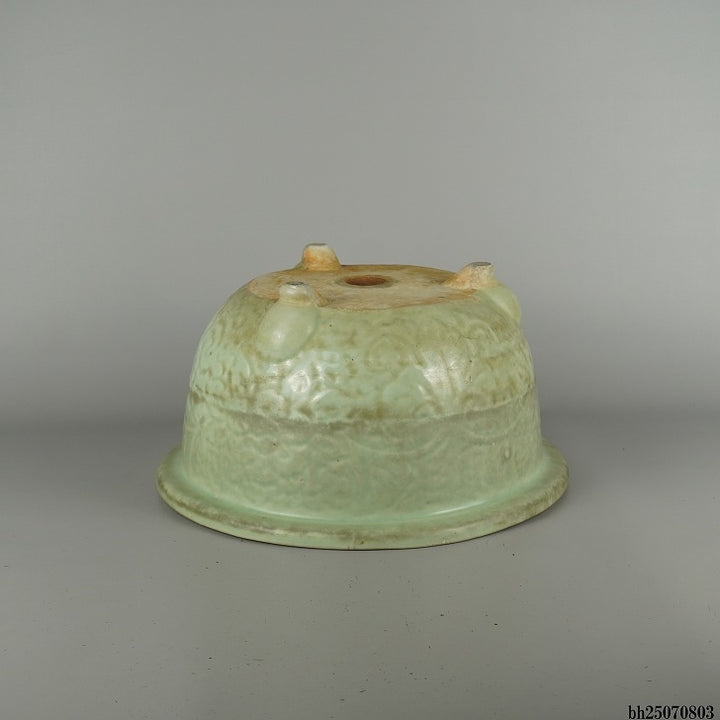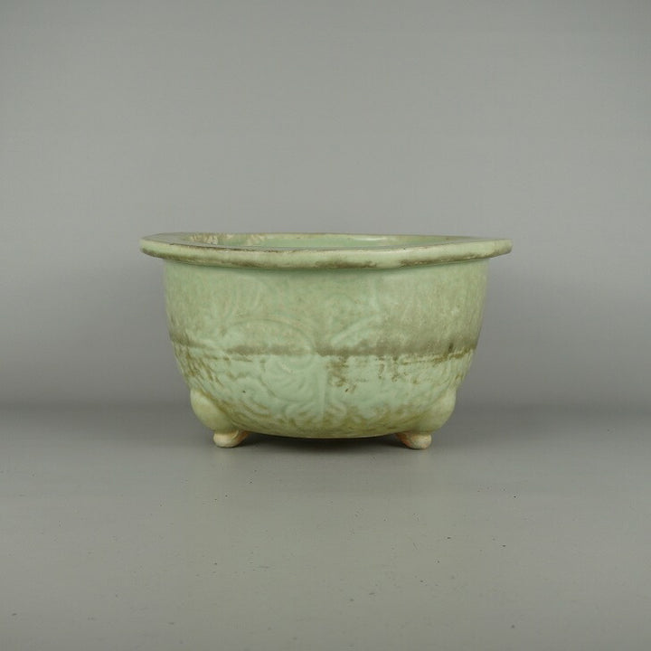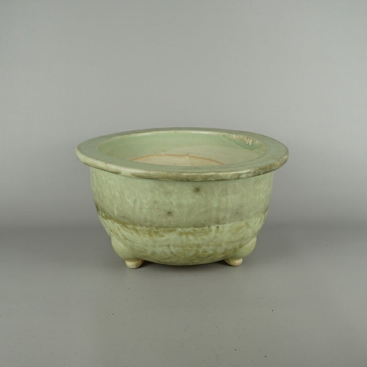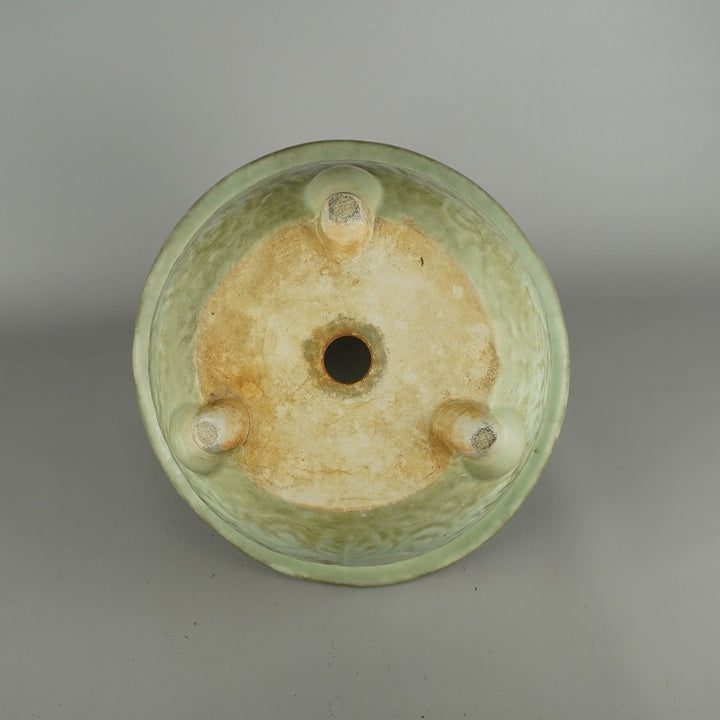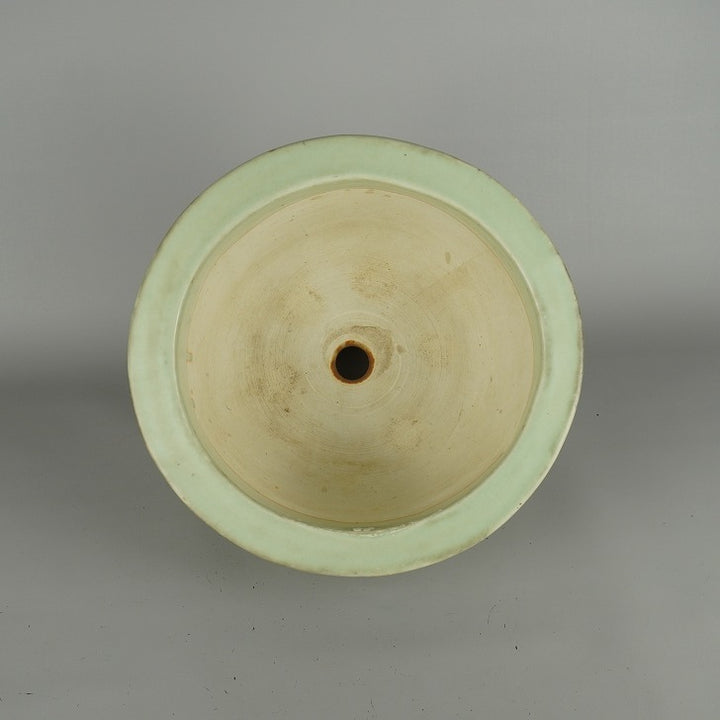 中古盆栽鉢 瀬戸焼 中型 長辺 約 30.5cm 丸鉢 外縁 模様 釉薬 中古鉢 k1198410864