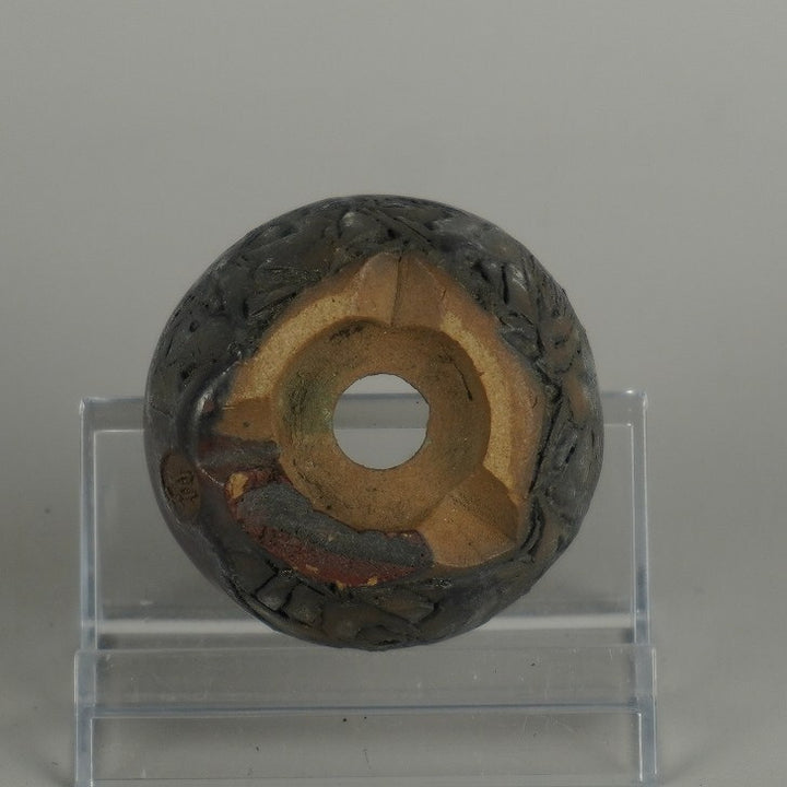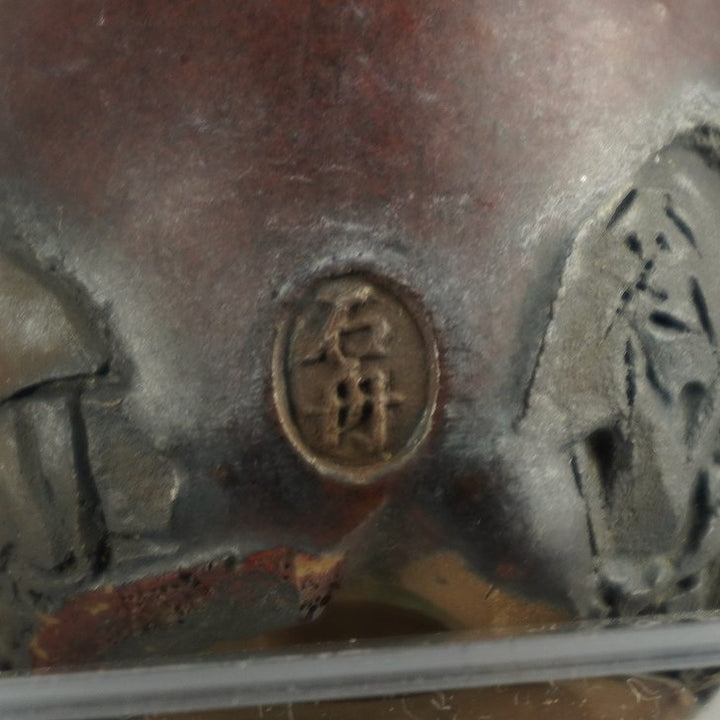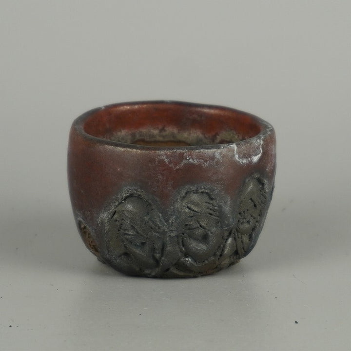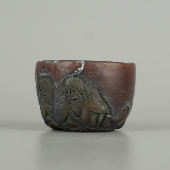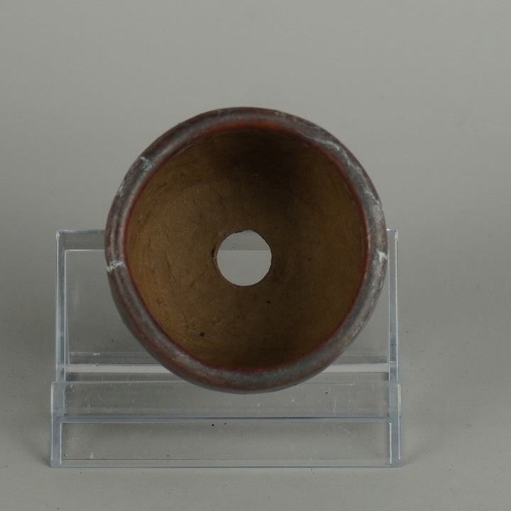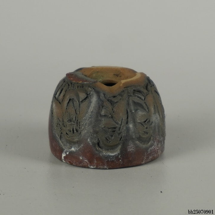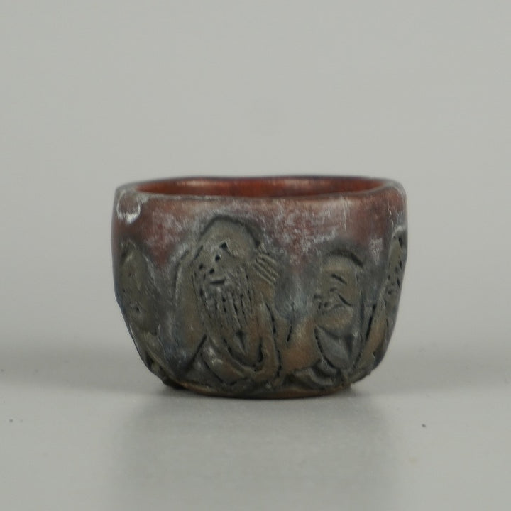 盆栽鉢 石舟 小鉢 長辺 約 5.5cm 丸鉢 彫入 老人 人物図 釉薬 鑑賞 観賞用 現品 中古鉢 品名石舟...