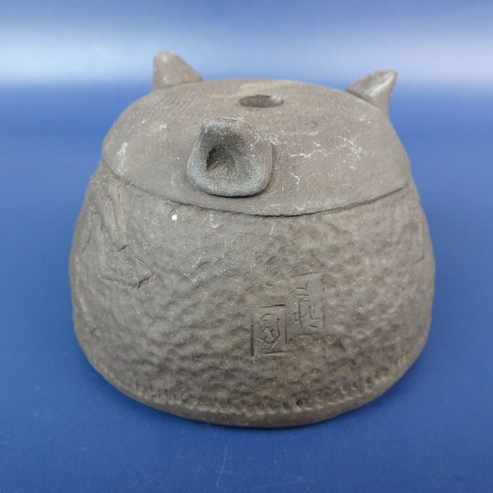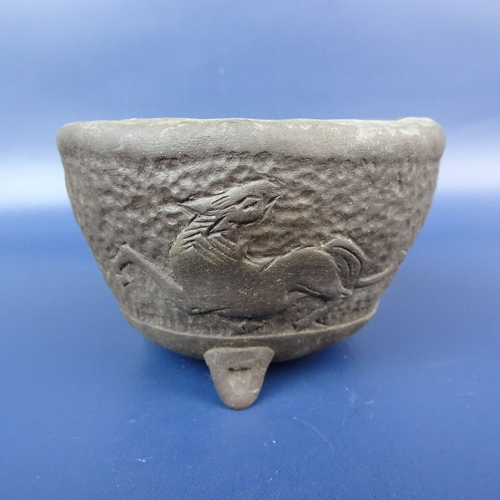 中古盆栽鉢 神戸 修 小鉢 長辺 約8.5cm 丸鉢 浮彫 馬 ウマ 泥鉢 中古鉢 n1198408038