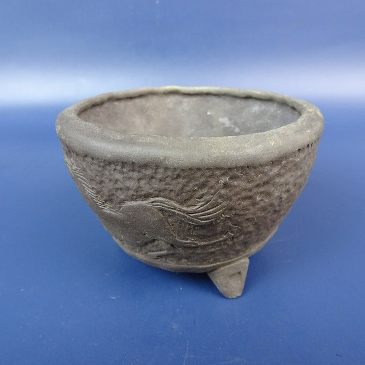【中古】盆栽鉢 神戸 修 小鉢 長辺 約8.5cm 丸鉢 浮彫 馬 ウマ 泥鉢 現品 中古鉢 品名神戸 修...