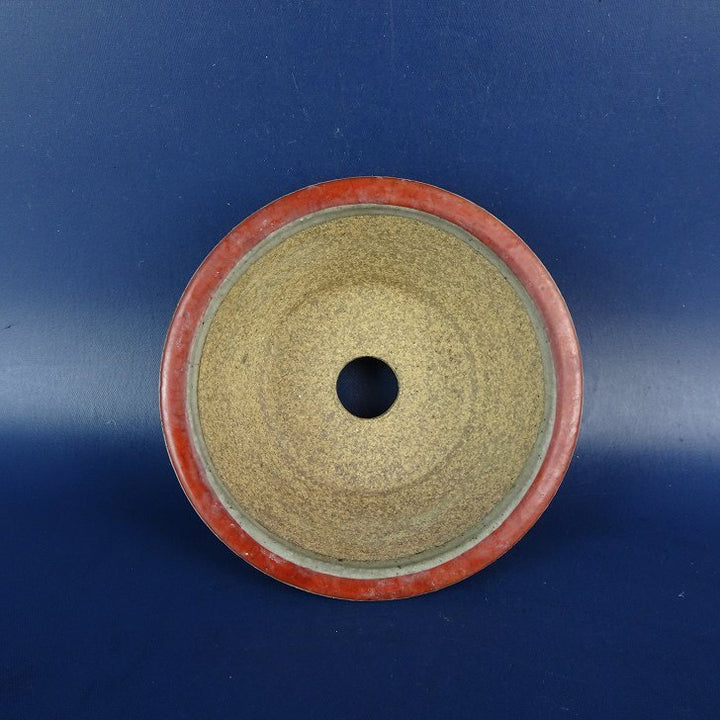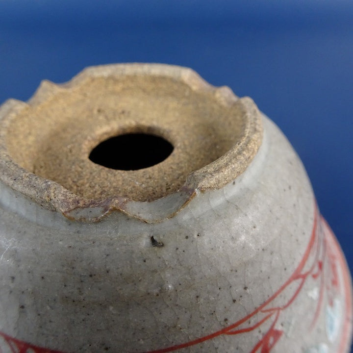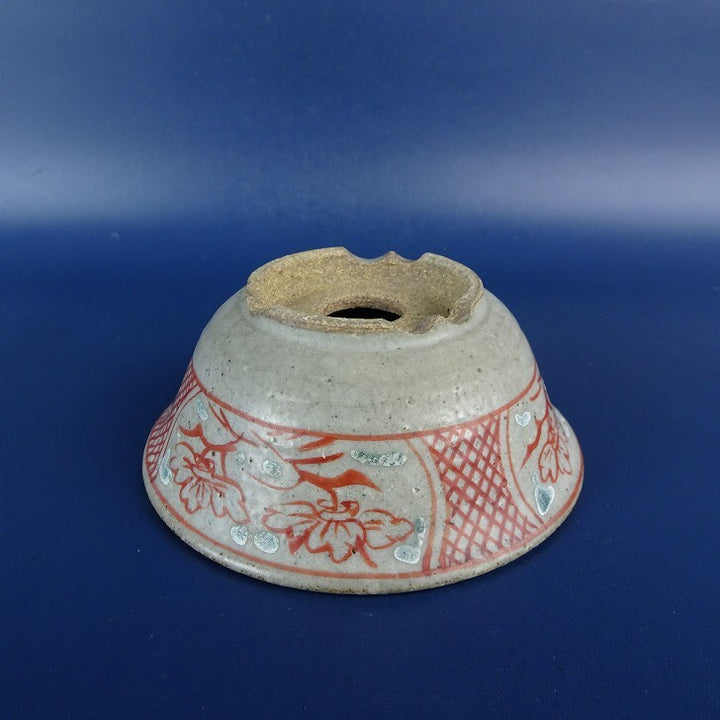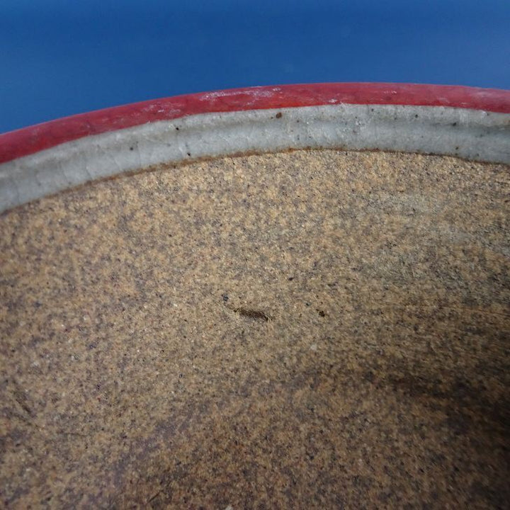 【中古】盆栽鉢 竹峯 小鉢 長辺 約 8.8cm 丸鉢 外縁 花 赤絵 釉薬 現品 中古鉢 品名竹峯...