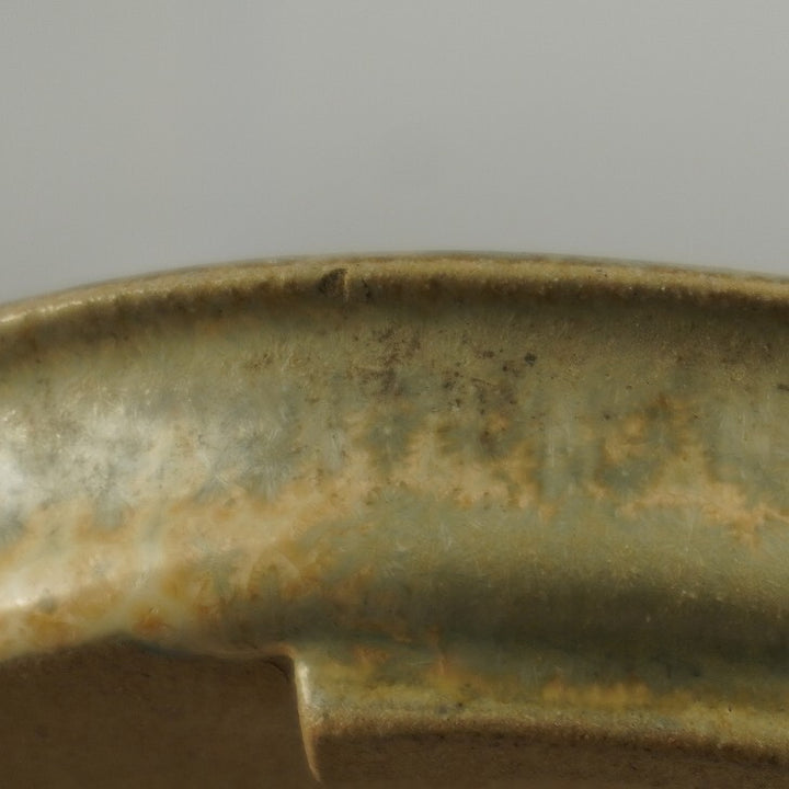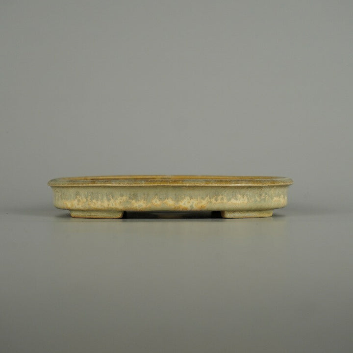 中古盆栽鉢 美功 小型 長辺 約 14.8cm 楕円鉢 縁付 釉薬 中古鉢 v1206121425