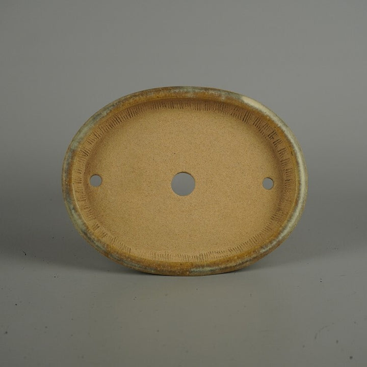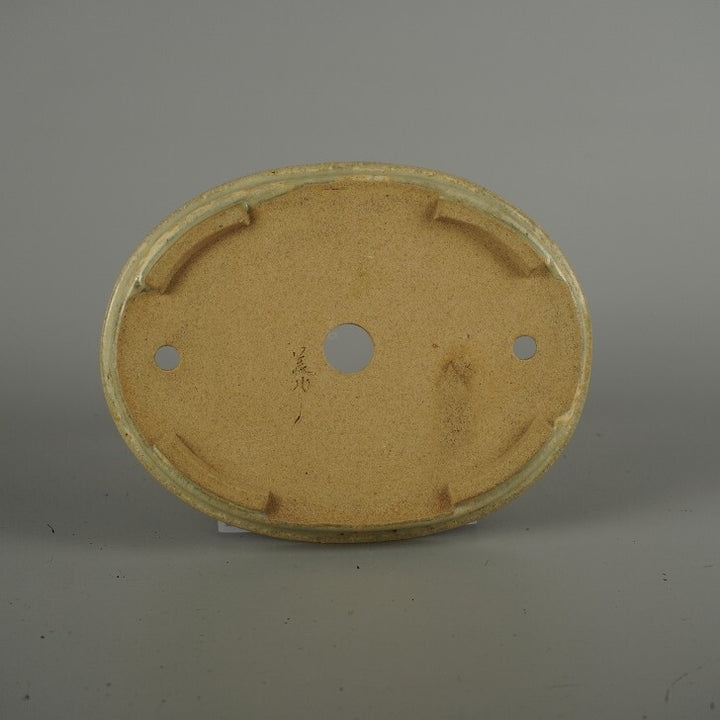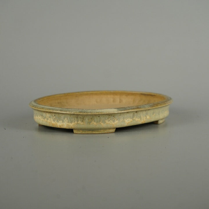 盆栽鉢 美功 小型 長辺 約 14.8cm 楕円鉢 縁付 釉薬 現品 中古鉢 品名美功...