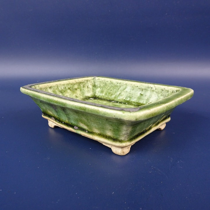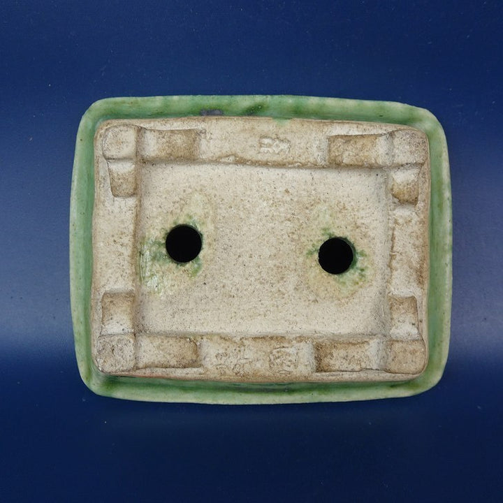 中古盆栽鉢 翠園 小型 長辺 約10.8cm 長方鉢 外縁 釉薬 中古鉢 j1198413433