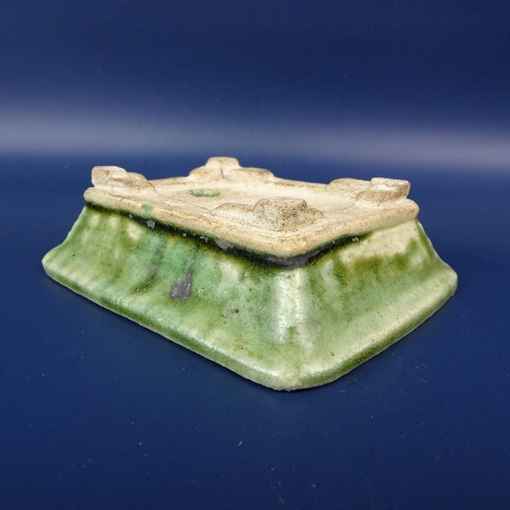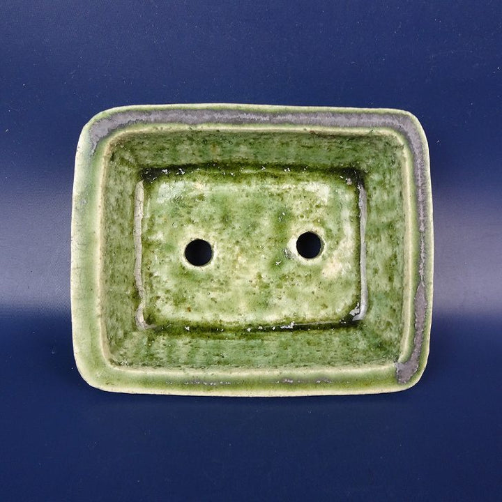 【中古】盆栽鉢 翠園 小型 長辺 約10.8cm 長方鉢 外縁 釉薬 現品 中古鉢...