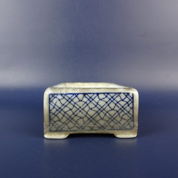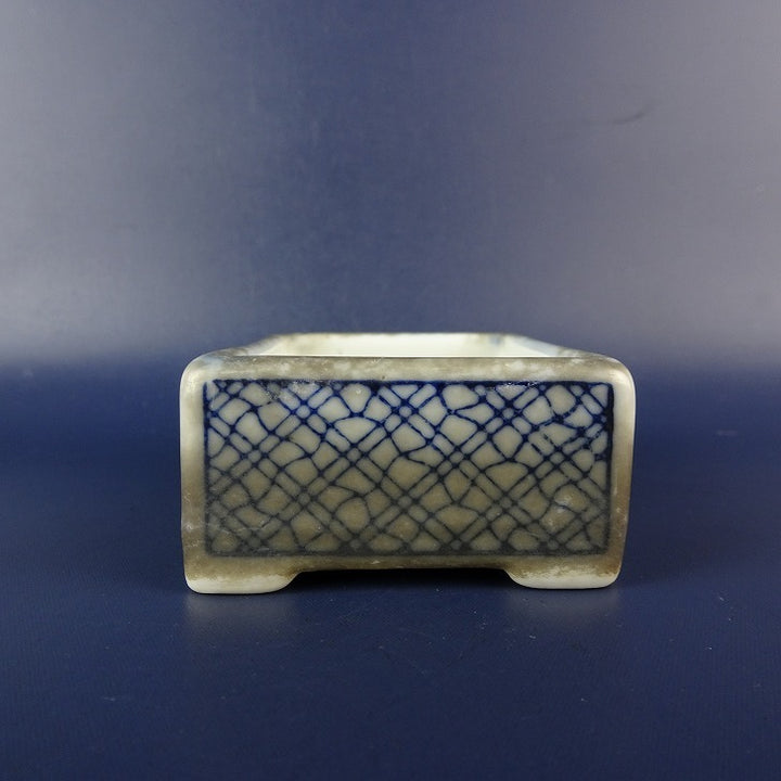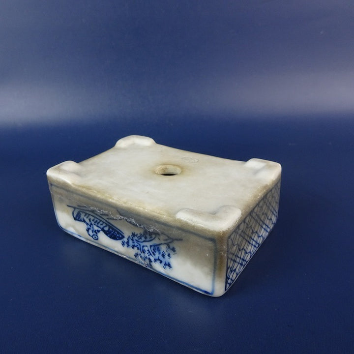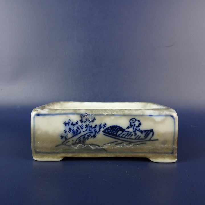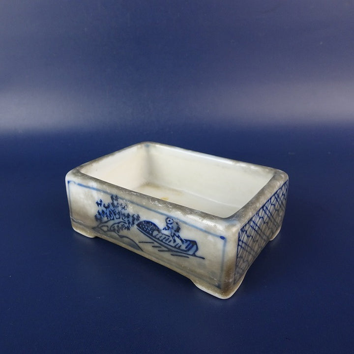 【中古】盆栽鉢 落款あり小鉢 長辺 約8.5cm 長方鉢 人物 風景 染付 釉薬 観賞用 現品 中古鉢 品名落款あり...