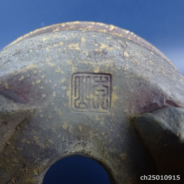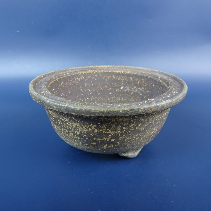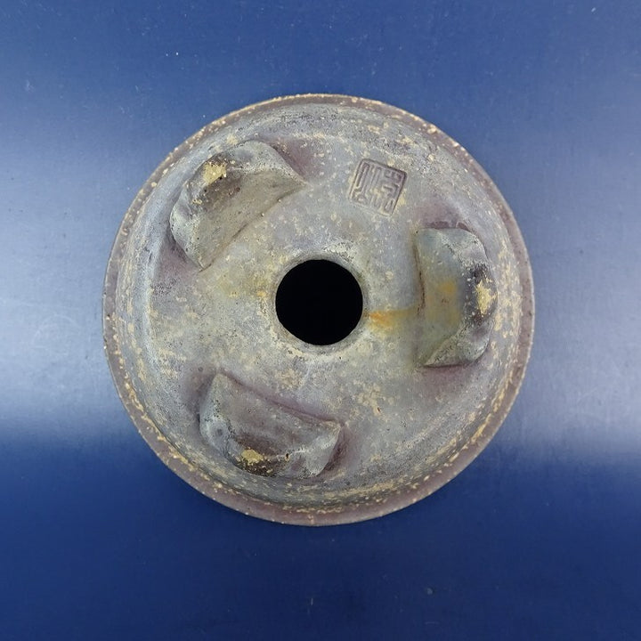 中古盆栽鉢 落款あり 小型 長辺 約10.3cm 丸鉢 外縁 泥鉢 中古鉢 x1198408147