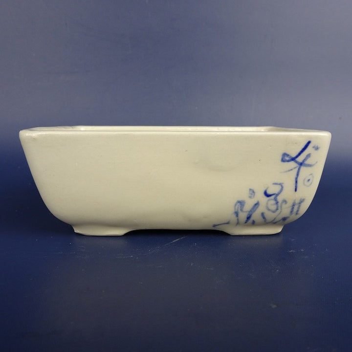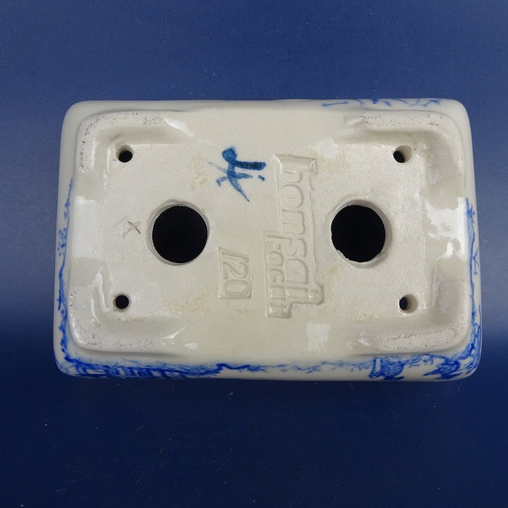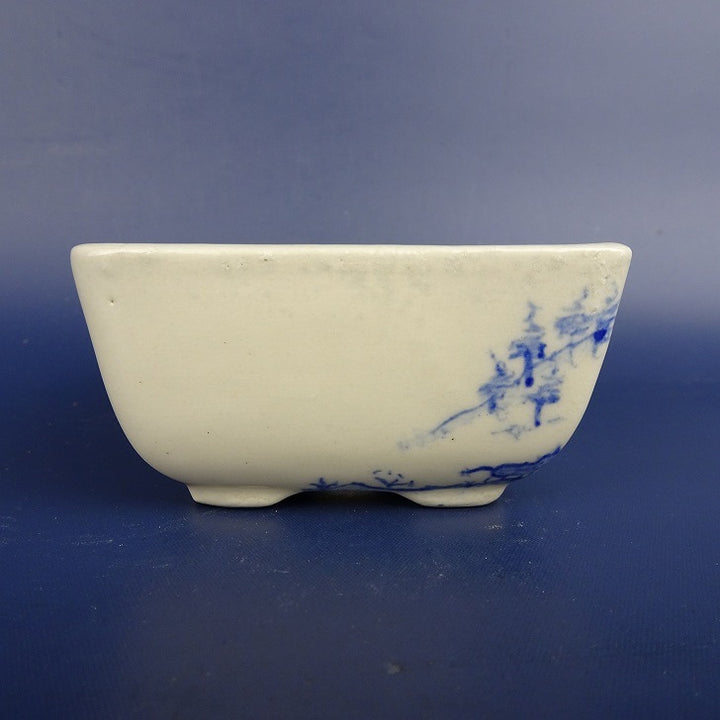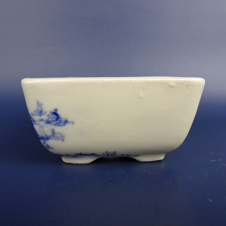 中古盆栽鉢 落款あり 小型 長辺 約10.3cm 長方鉢 染付 風景画 中古鉢 r1198404987