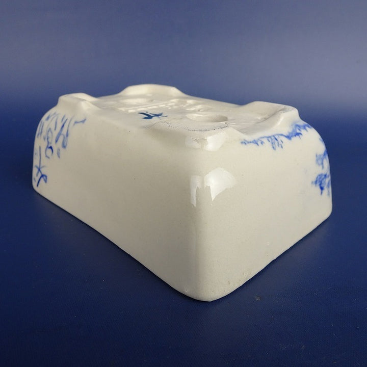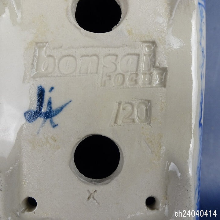 【中古】盆栽鉢 落款あり 小型 長辺 約10.3cm 長方鉢 染付 風景画 現品 中古鉢 品名落款あり...