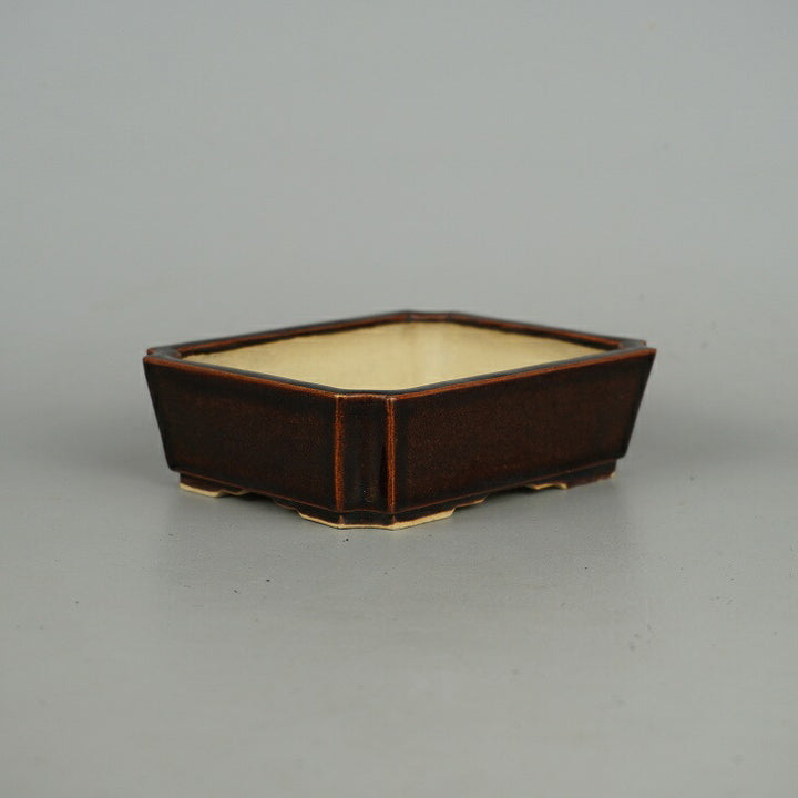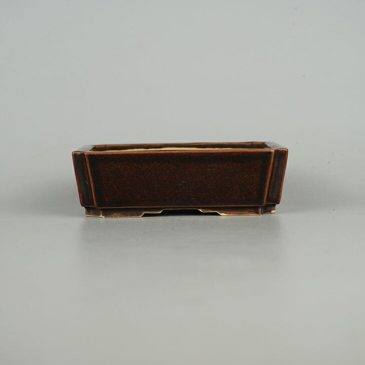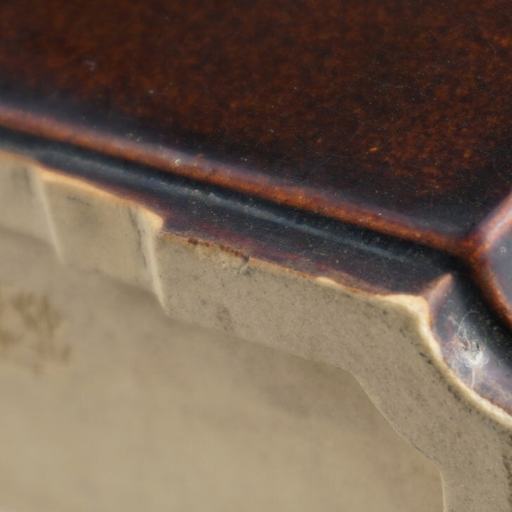 中古盆栽鉢 落款あり 小型 長辺 約12.2cm 長方鉢 外縁 隅切 釉薬 中古鉢 e1198413666