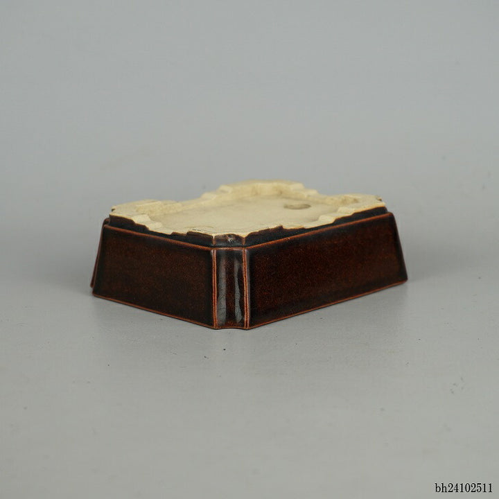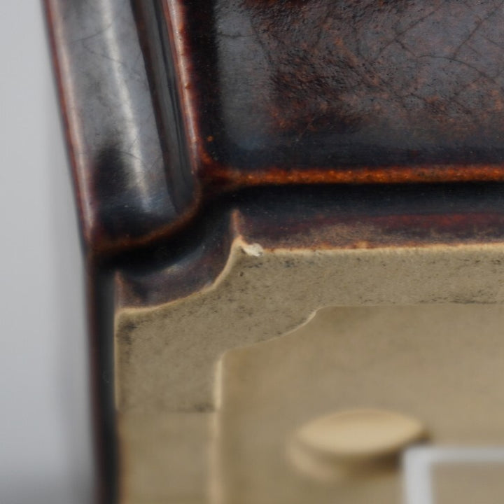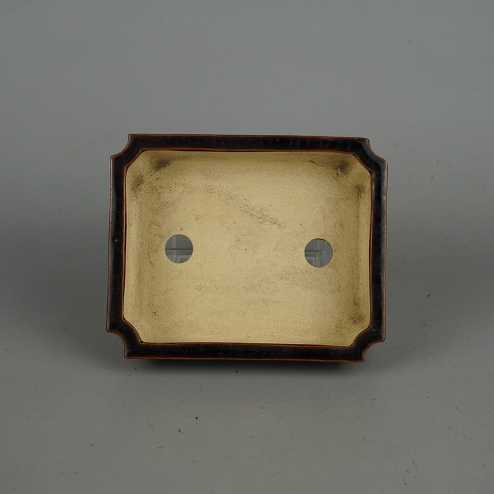 盆栽鉢 落款あり 小型 長辺 約12.2cm 長方鉢 外縁 隅切 釉薬 現品 中古鉢 品名落款あり...