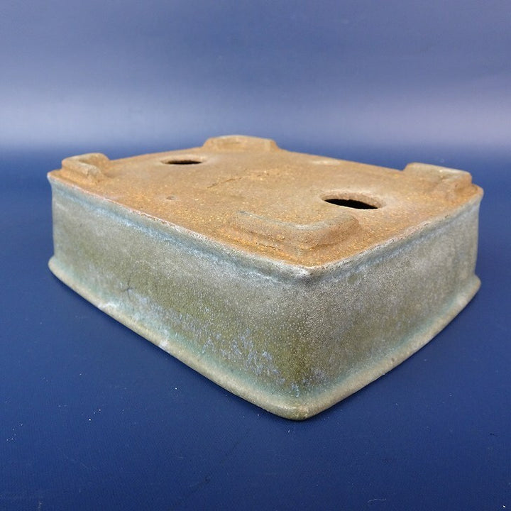 中古盆栽鉢 落款あり 小型 長辺 約12cm 長方鉢 外縁 下帯 釉薬 中古鉢 k1198413212