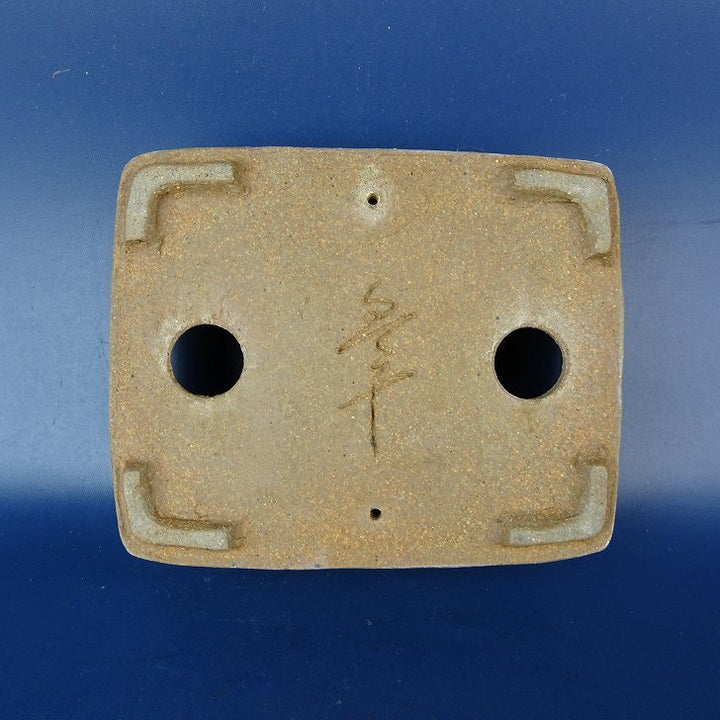 【中古】盆栽鉢 落款あり 小型 長辺 約12cm 長方鉢 外縁 釉薬 現品 中古鉢 品名落款あり...