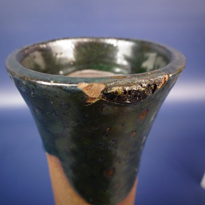 中古盆栽鉢 落款あり 小型 高さ 約14.7cm 下方 丸鉢 釉薬 中古鉢 o1198429405