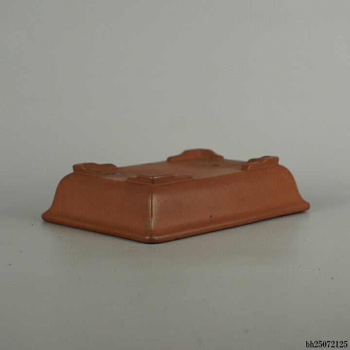盆栽鉢 落款あり w落款 小型 長辺 約 16.3cm 長方鉢 外縁 泥物 中国鉢 現品 中古鉢 品名落款あり...