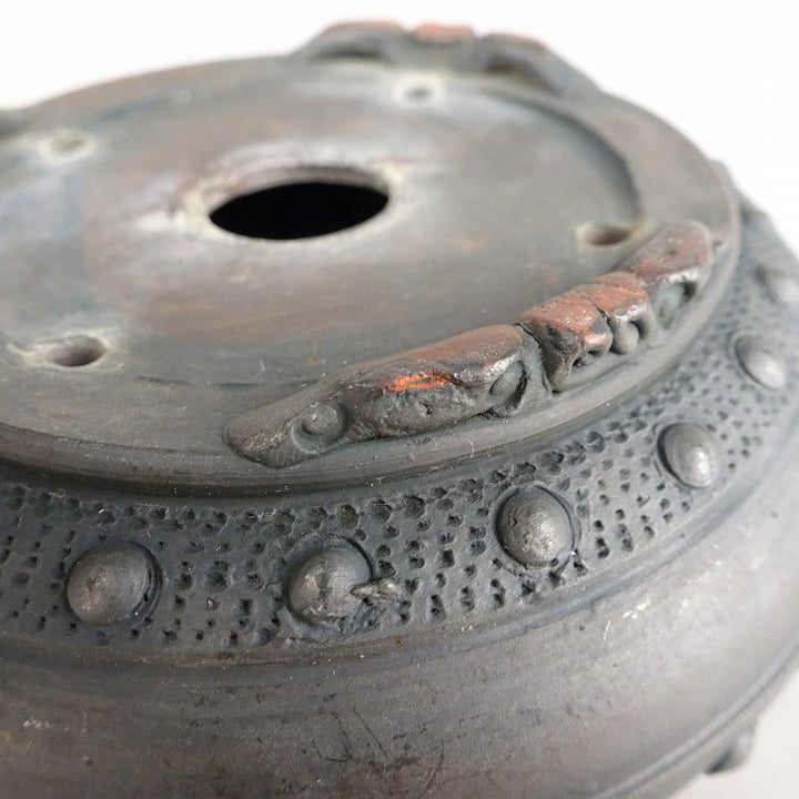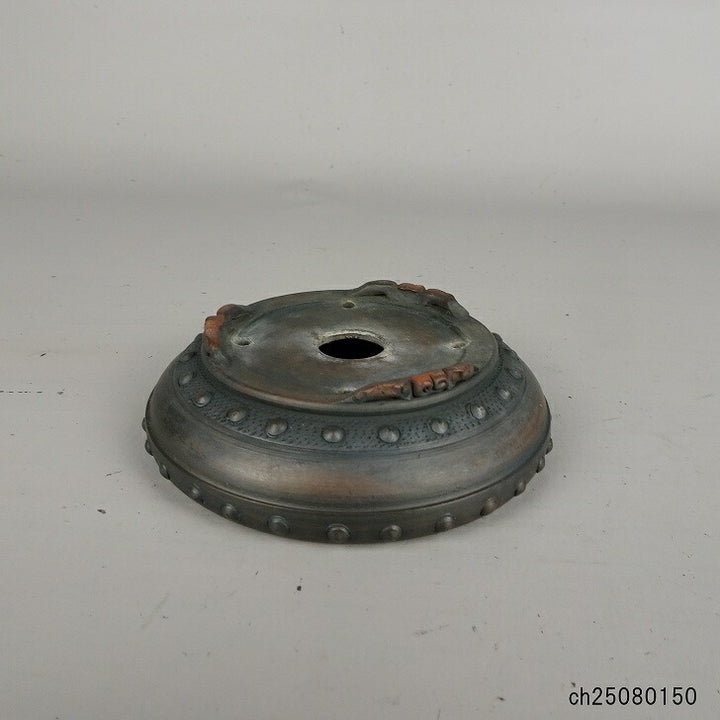 【中古】盆栽鉢 落款なし 小型 長辺 約 11.5cm 丸鉢 鋲打 雲足 中国鉢 現品 中古鉢 品名落款なし...