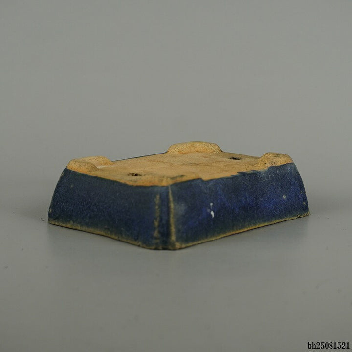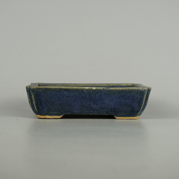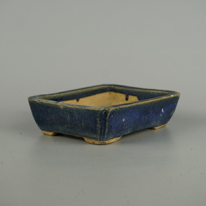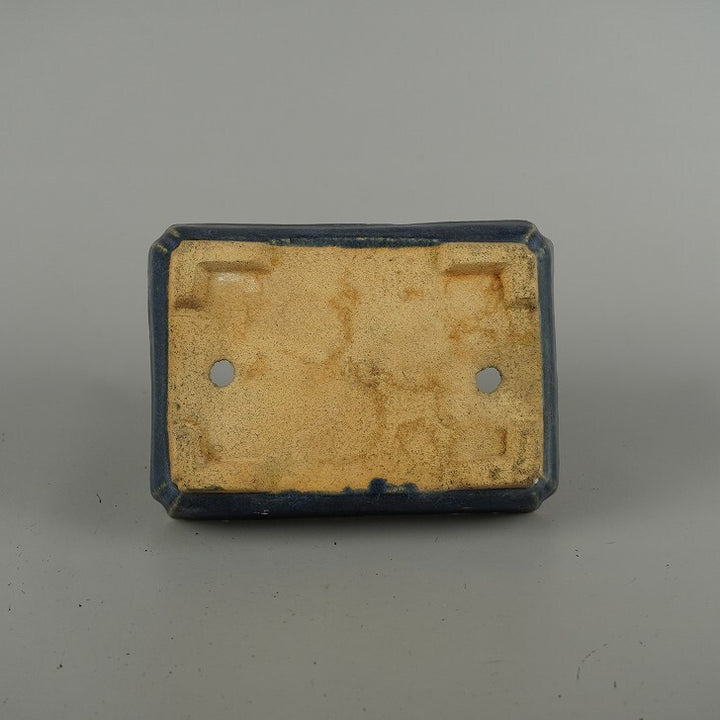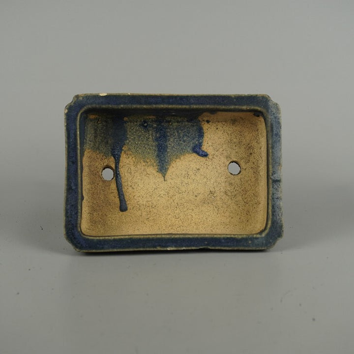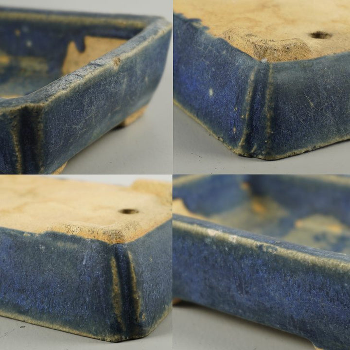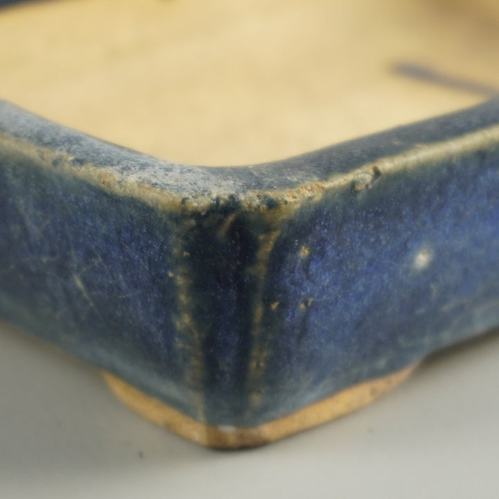 盆栽鉢 落款なし 小型 長辺 約 15.6cm 長方鉢 隅入 釉薬 広東鉢 現品 中古鉢 品名落款なし...