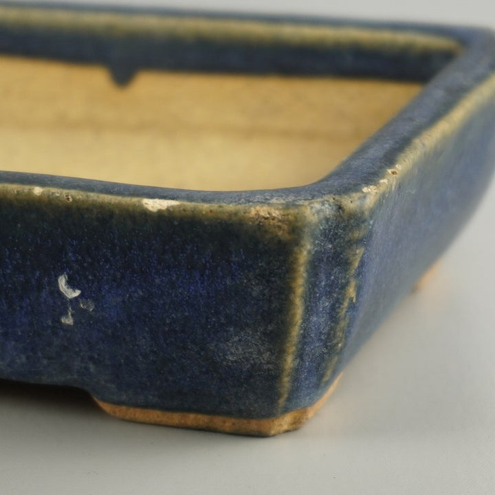 中古盆栽鉢 落款なし 小型 長辺 約 15.6cm 長方鉢 隅入 釉薬 広東鉢 中古鉢 b1209401623