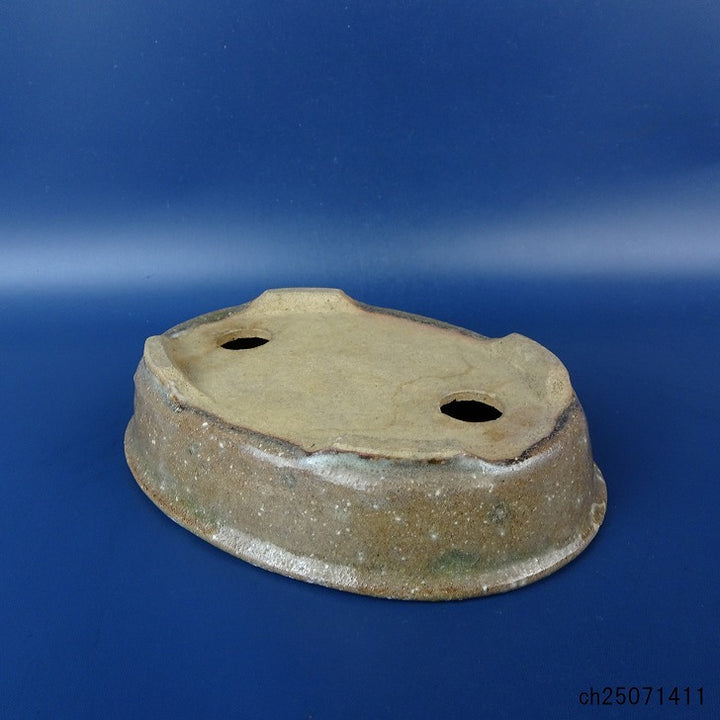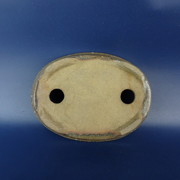 【中古】盆栽鉢 落款なし 小型 長辺 約 15cm 楕円鉢 外縁 釉薬 観賞用 現品 中古鉢 品名落款なし...