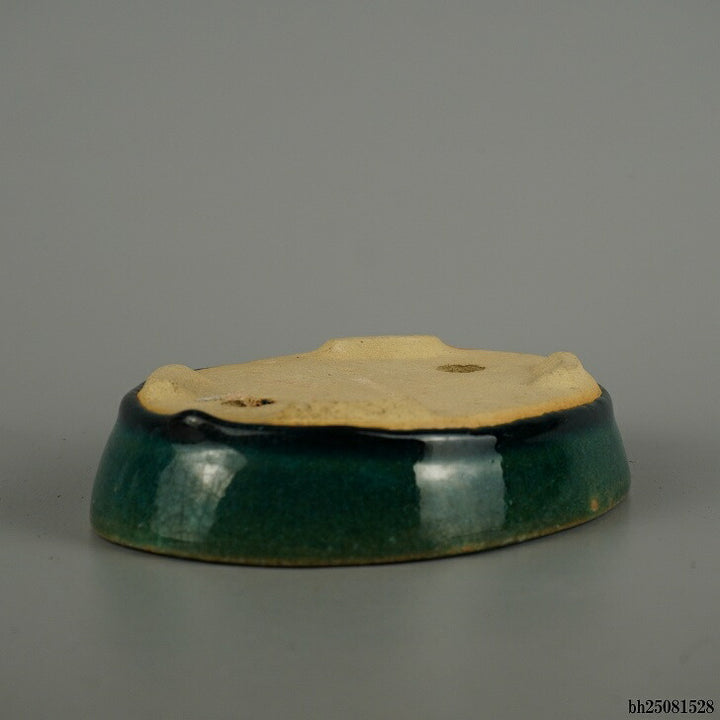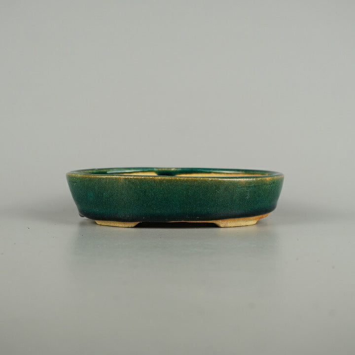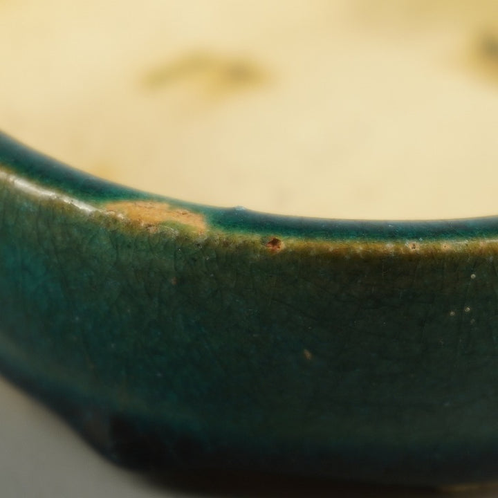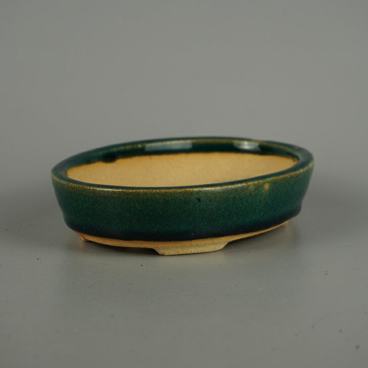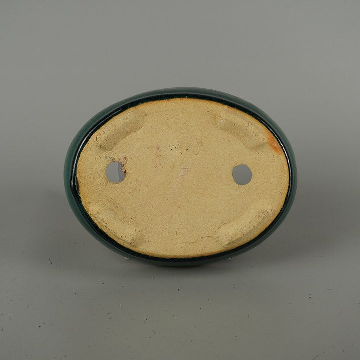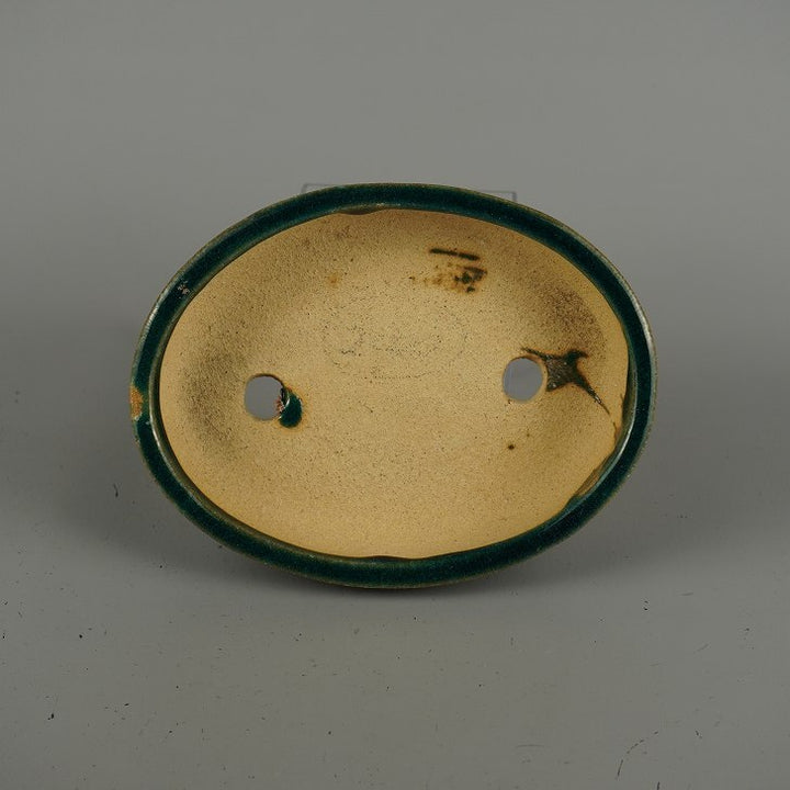 盆栽鉢 落款なし 小型 長辺 約 16.8cm 楕円鉢 釉薬 広東鉢 現品 中古鉢 品名落款なし...