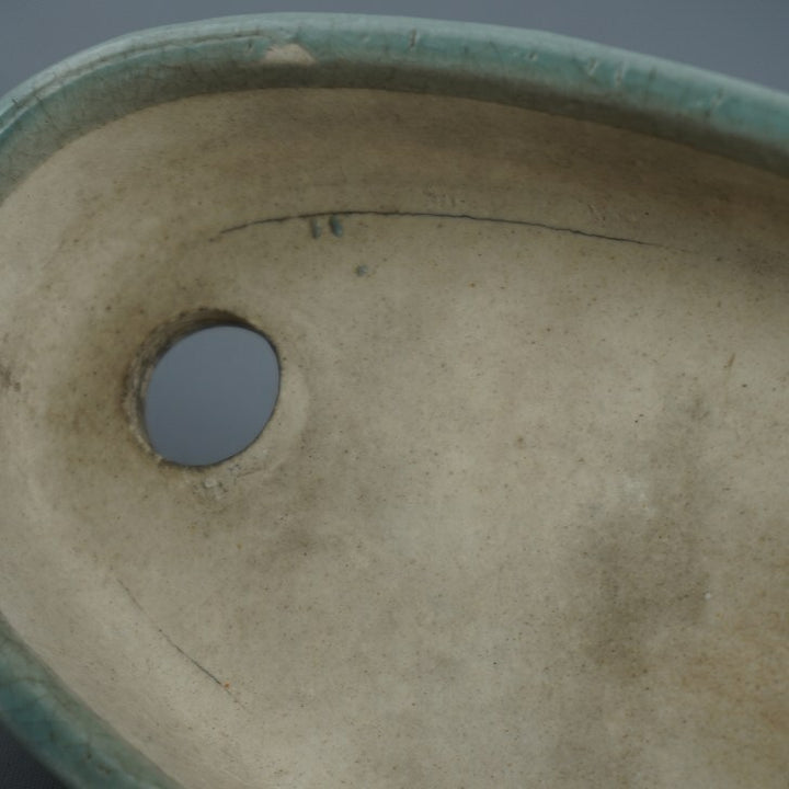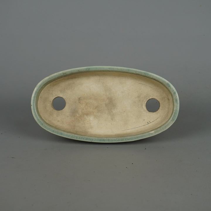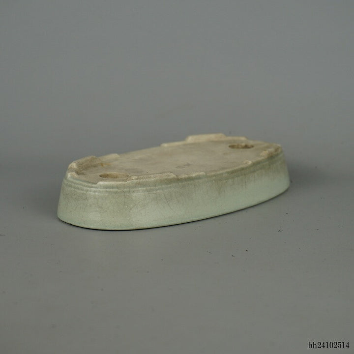 盆栽鉢 落款なし 小型 長辺 約 17.8cm 楕円鉢 釉薬 現品 中古鉢 品名落款なし...