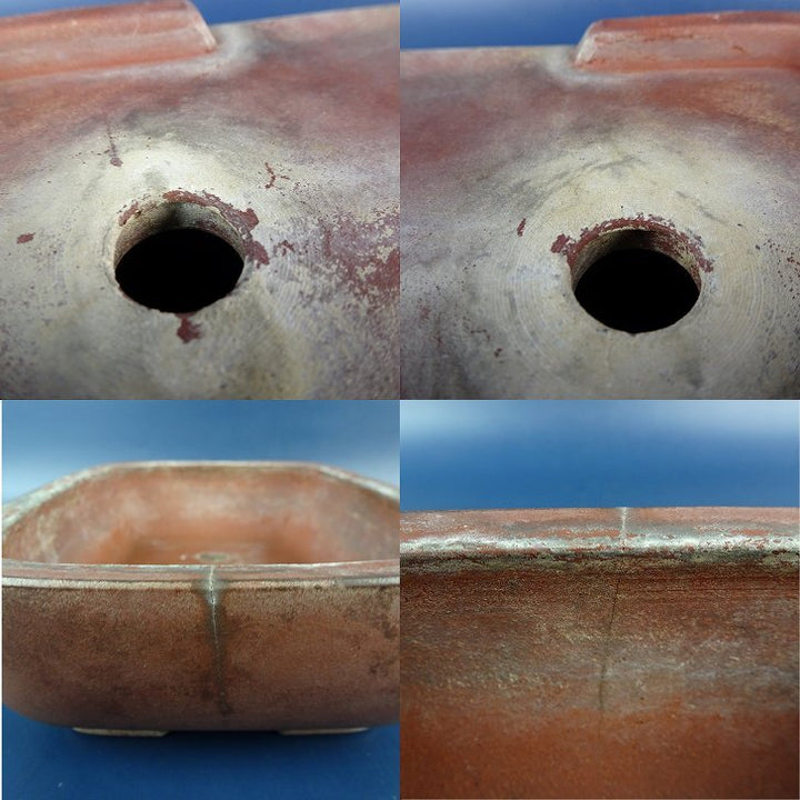 【中古】盆栽鉢 落款なし 小型 長辺 約18cm 長方鉢 泥鉢 現品 中古鉢 品名落款なし...
