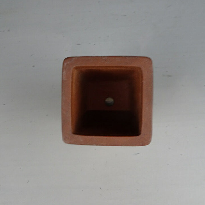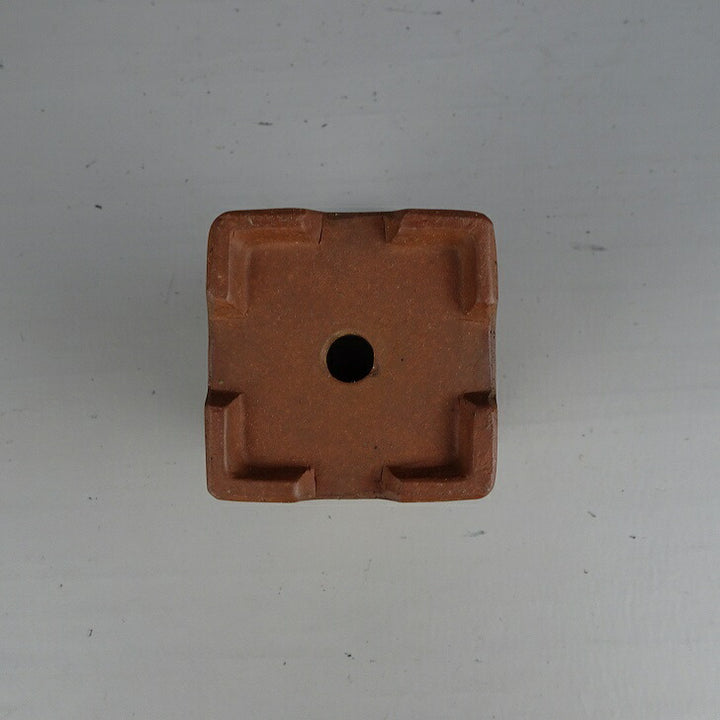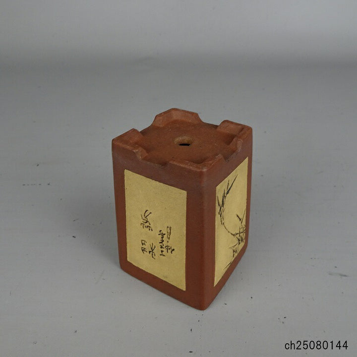中古盆栽鉢 落款なし 小鉢 高さ 約 7.7cm 正方鉢 釘彫 風景 文字 泥鉢 中国鉢 鑑賞 観賞用 中古鉢 m1209385036