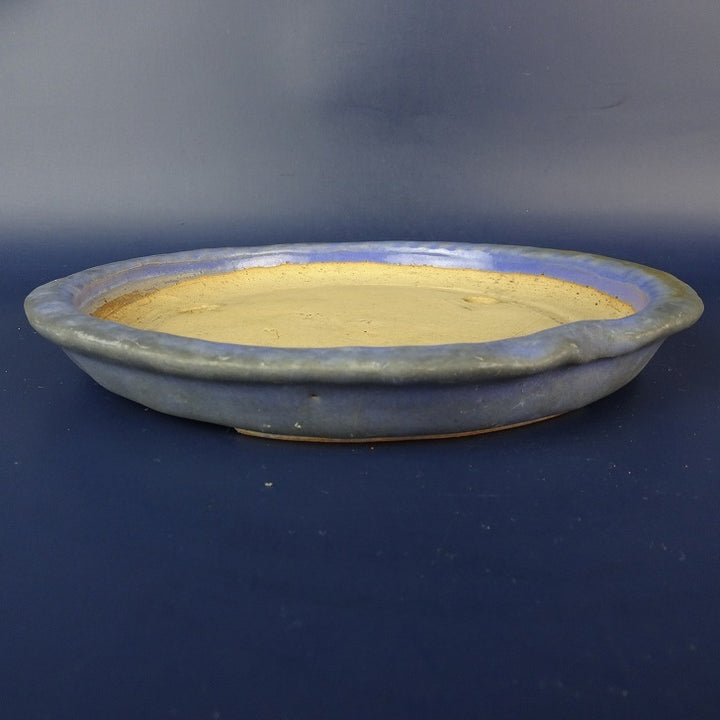 中古盆栽鉢 蕾 中型 長辺 約20.5cm 変形 丸鉢 外縁 釉薬 中古鉢 c1198413058