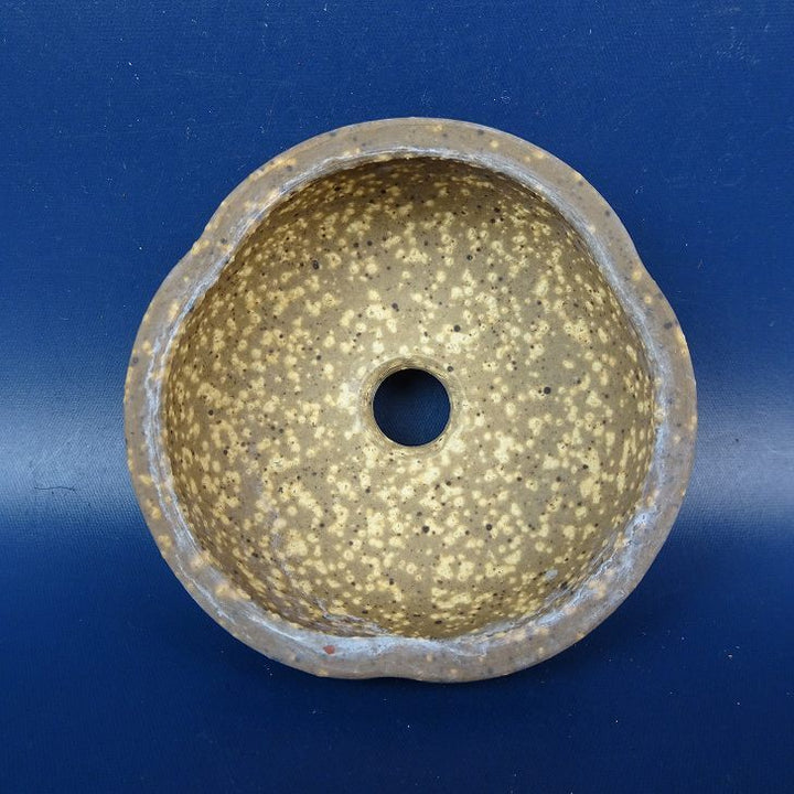 中古盆栽鉢 西山 小鉢 長辺 約7.4cm 変形 丸鉢 外縁 梨皮 中古鉢 1198404820