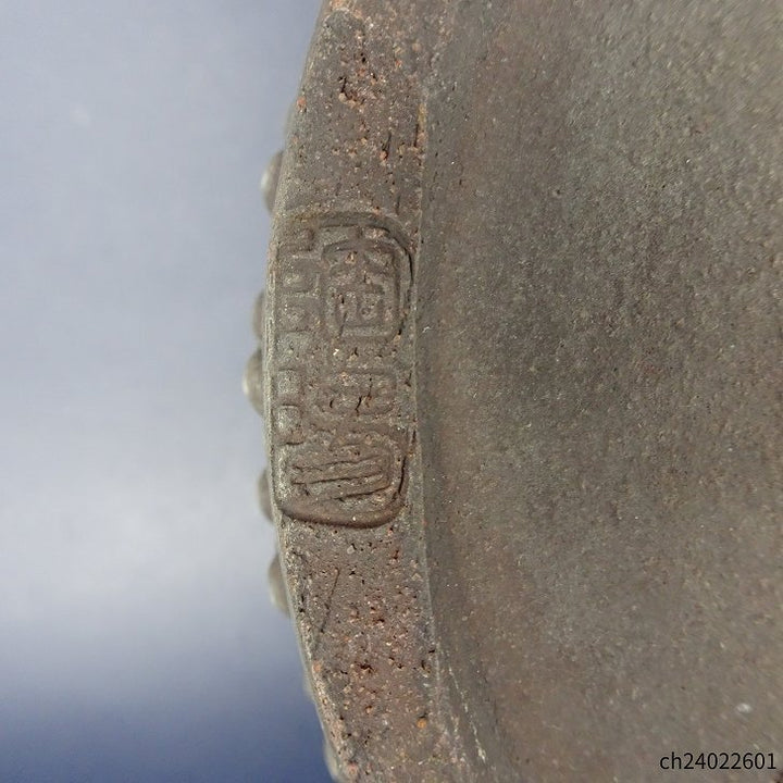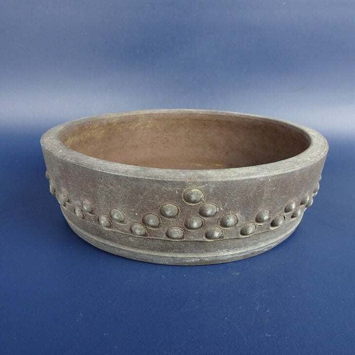 中古盆栽鉢 陶陽 小型 長辺 約15.2cm 丸鉢 鋲打 泥鉢 中古鉢 g1198415343