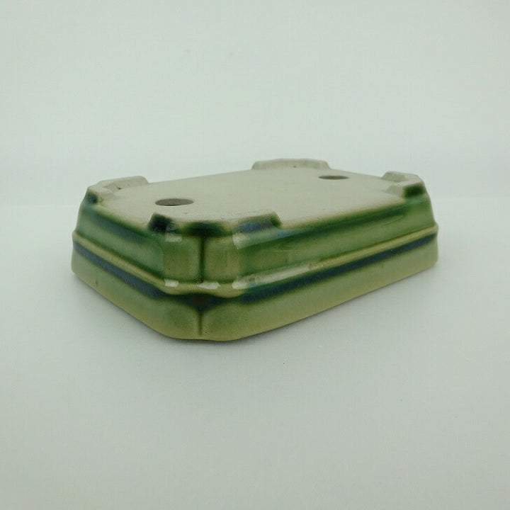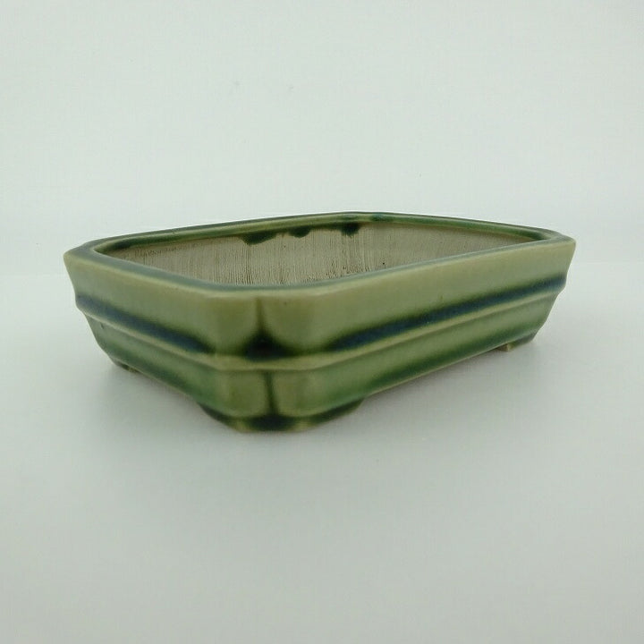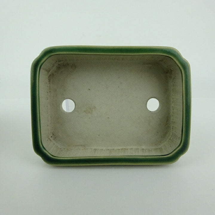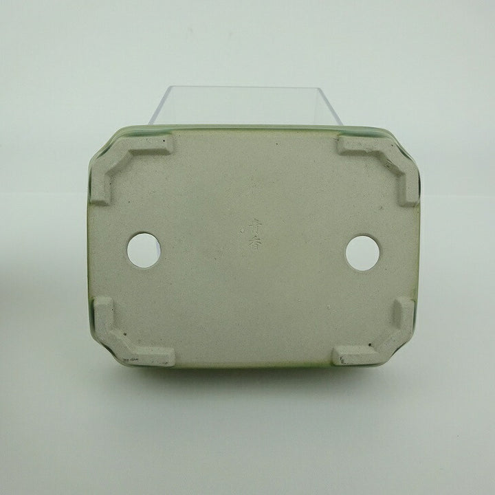盆栽鉢 青香 小型 長辺 約 12.1cm 長方 鉢 中帯 隅入 釉薬 現品 中古鉢 品名青香...