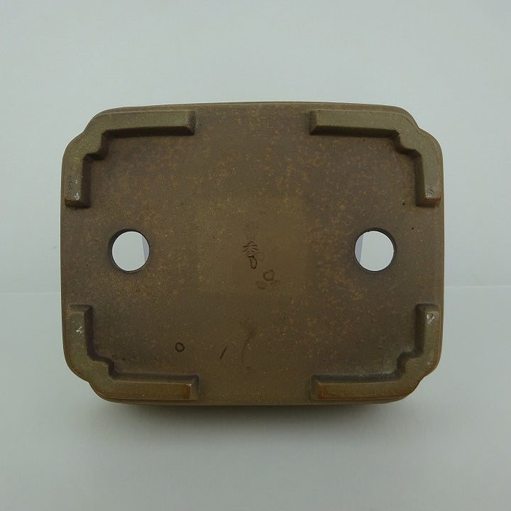 盆栽鉢 青香 小型 長辺 約 14.3cm 長方 鉢 隅入 中帯 泥物 現品 中古鉢 品名青香...