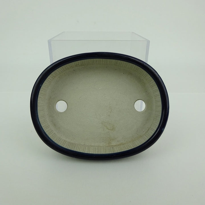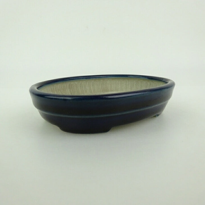 中古盆栽鉢 青香 小鉢 長辺 約10cm 楕円鉢 中帯 釉薬 中古鉢 b1198417582