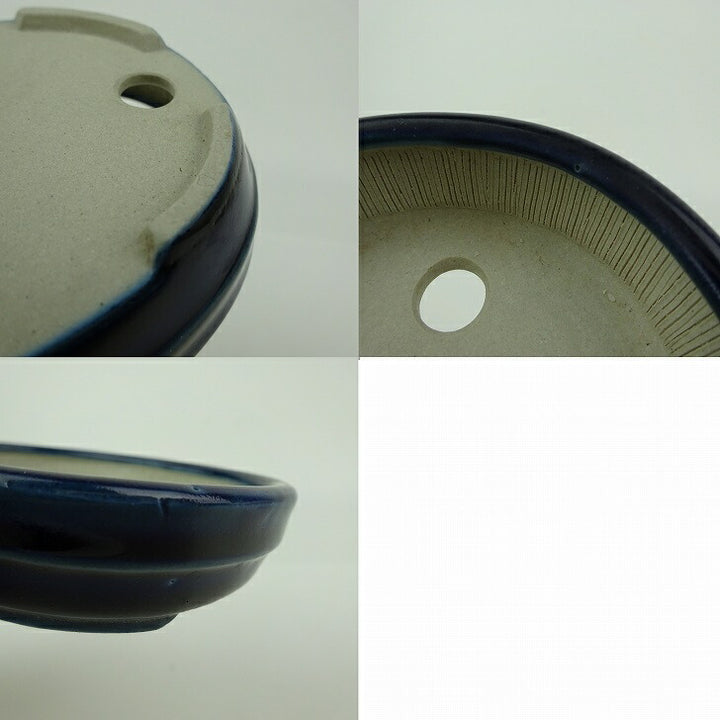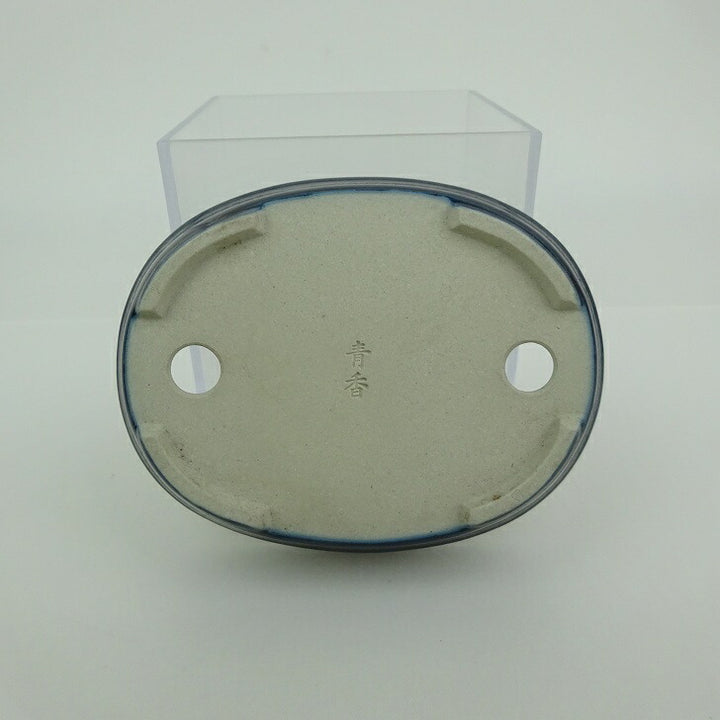 盆栽鉢 青香 小鉢 長辺 約 10cm 楕円 鉢 中帯 釉薬 現品 中古鉢 品名青香...