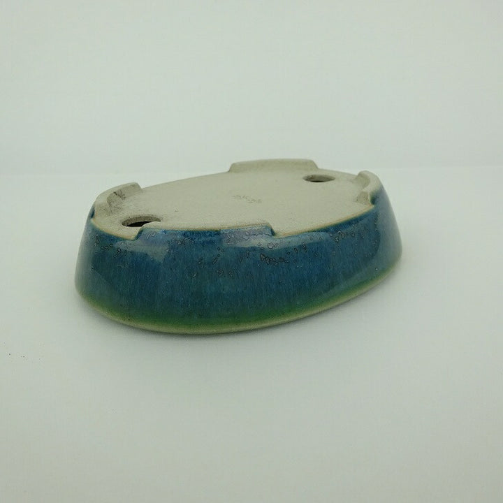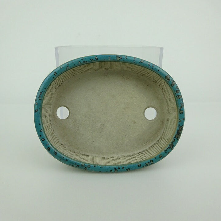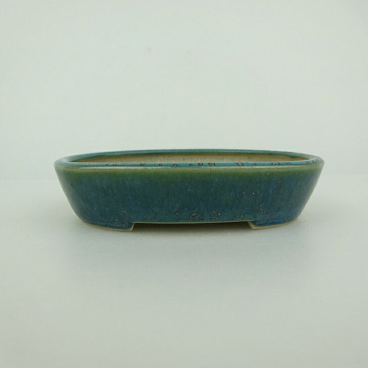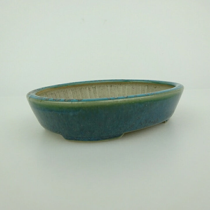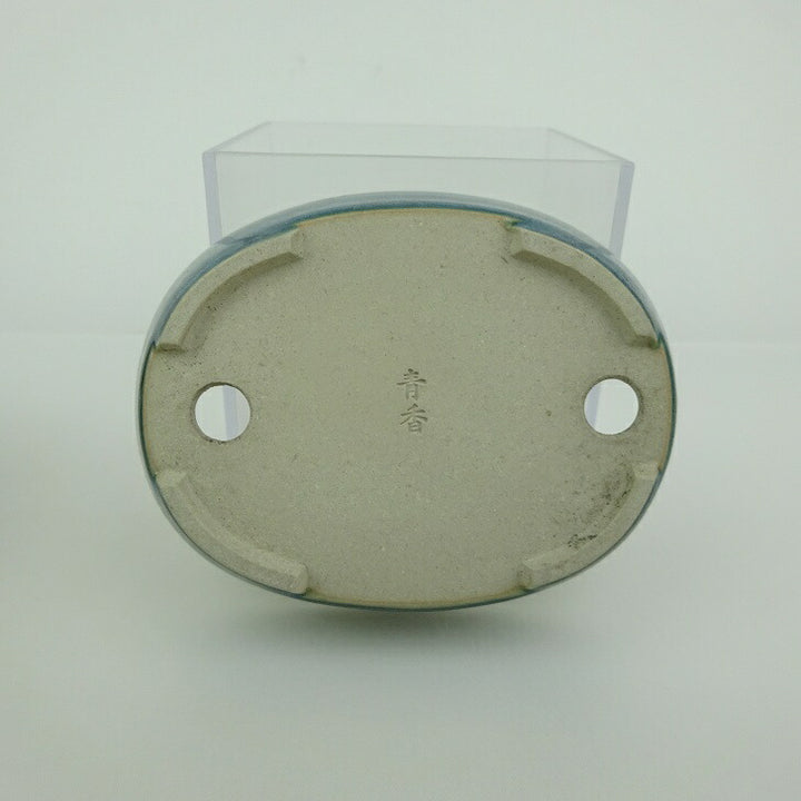中古盆栽鉢 青香 小鉢 長辺 約10cm 楕円鉢 釉薬 中古鉢 g1198422012