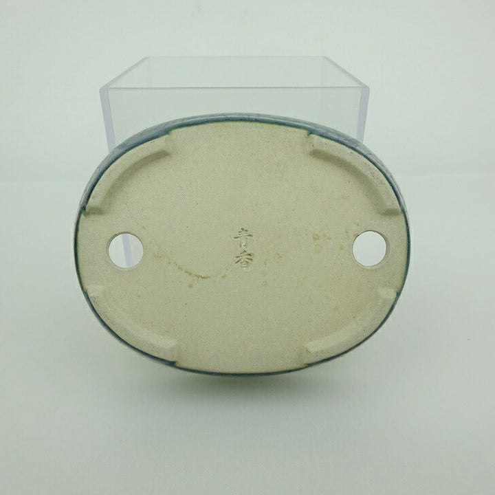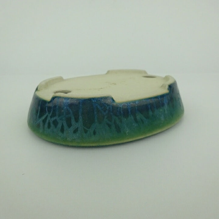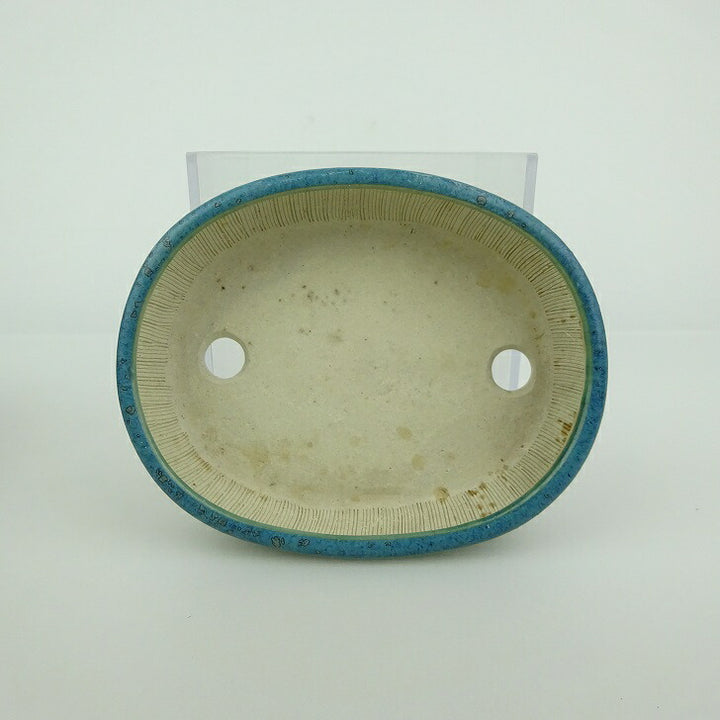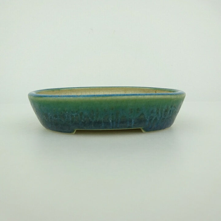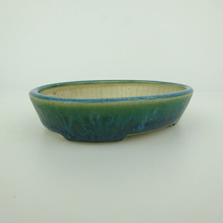 中古盆栽鉢 青香 小鉢 長辺 約10cm 楕円鉢 釉薬 中古鉢 k1198405892