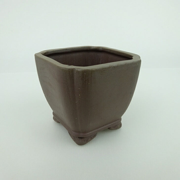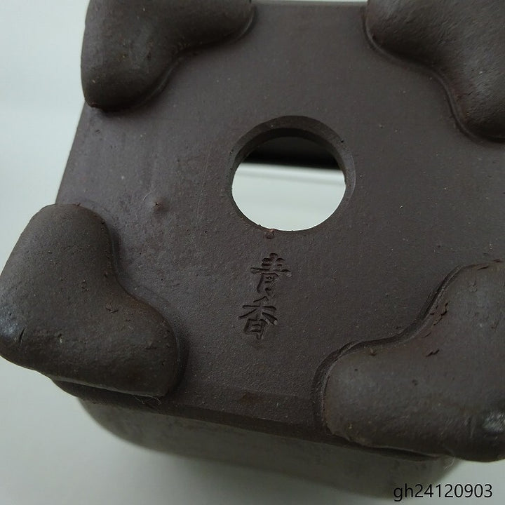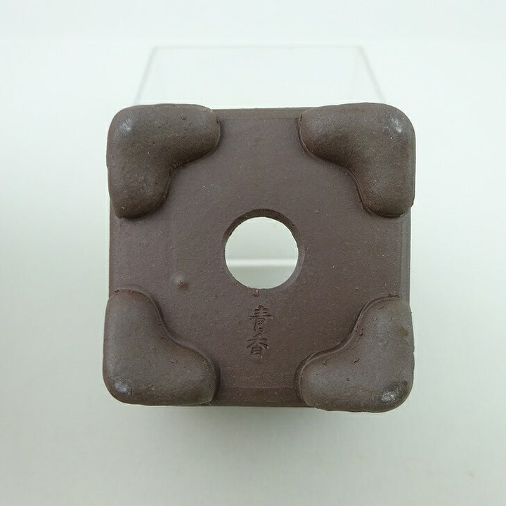 盆栽鉢 青香 小鉢 長辺 約 6.5cm 正方鉢 隅入 雲足 下帯 泥物 現品 中古鉢 品名青香...