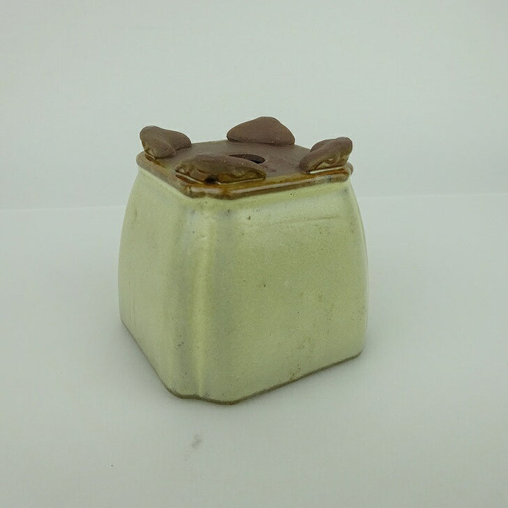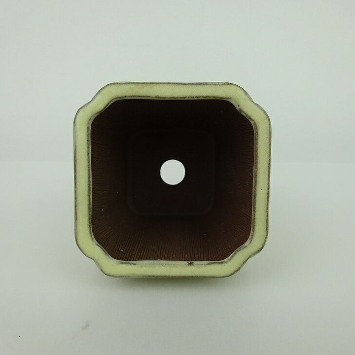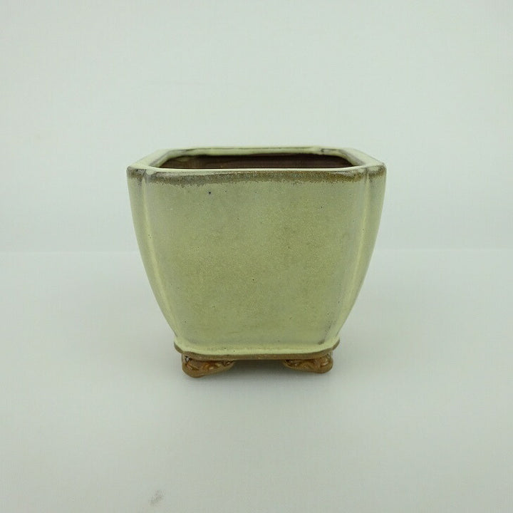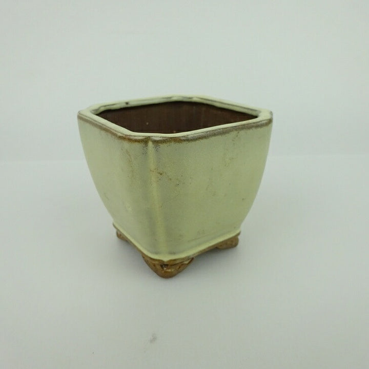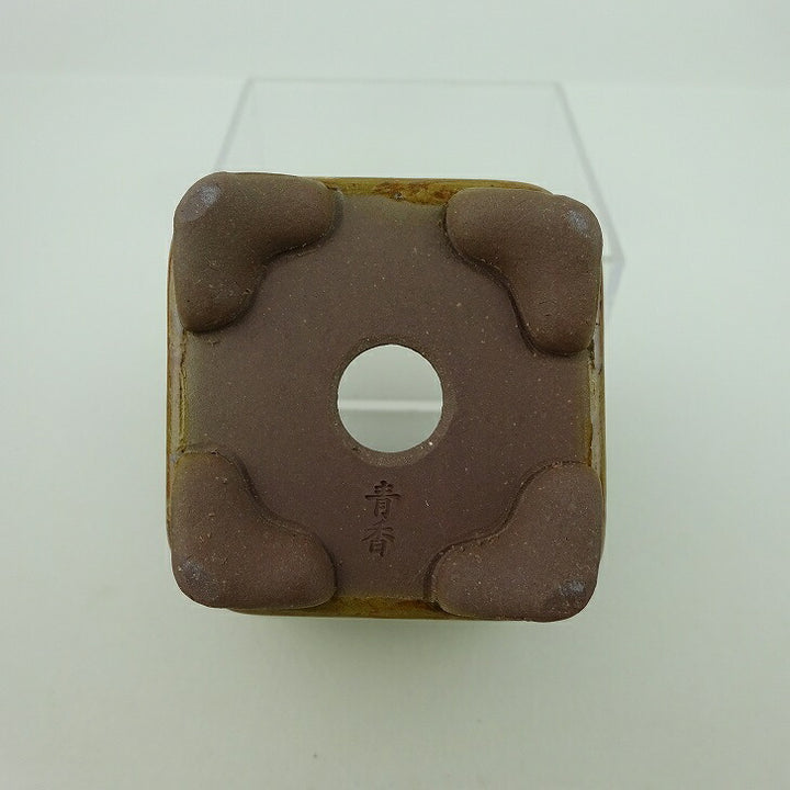 盆栽鉢 青香 小鉢 長辺 約 6.5cm 正方鉢 隅入 雲足 釉薬 現品 中古鉢 品名青香...