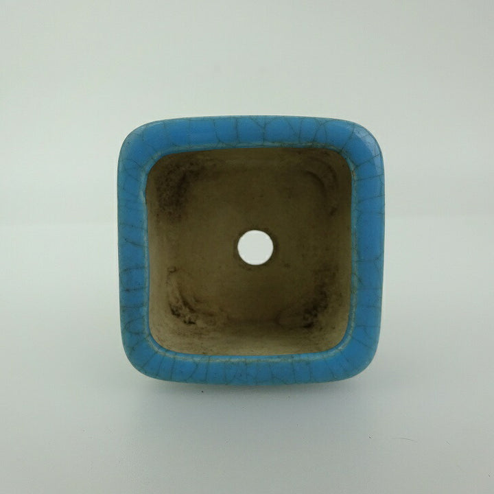 中古盆栽鉢 青香 豆鉢 長辺 約4.5cm 正方鉢 貫入 釉薬 中古鉢 v1198439615
