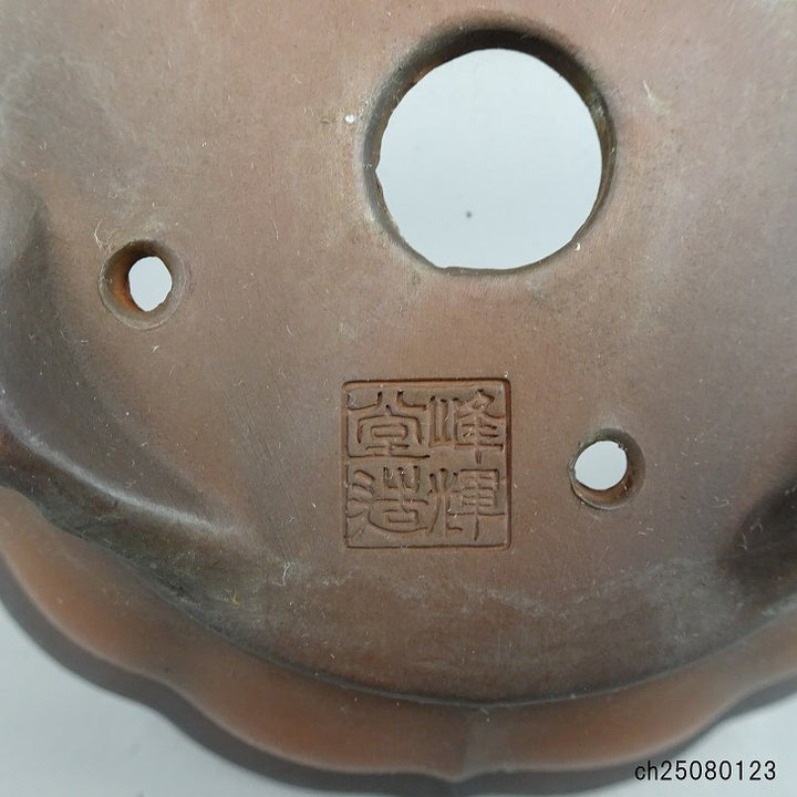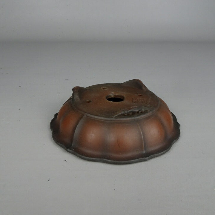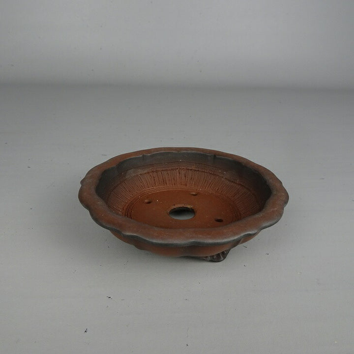 中古 盆栽鉢 峰輝堂造 小型 長辺 約 10.5cm 輪花鉢 外縁 雲足 泥物 中古鉢 q1199274187