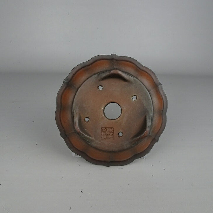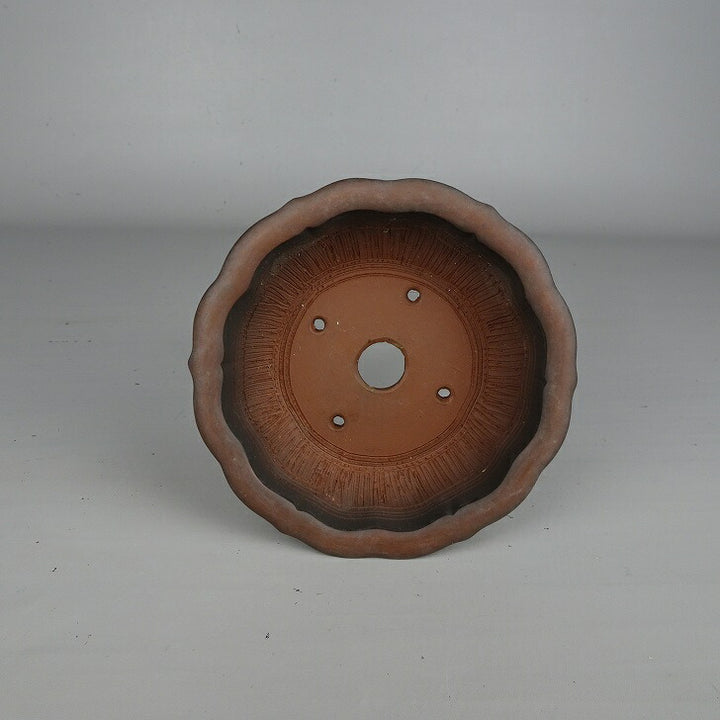 盆栽鉢 峰輝堂造 小型 長辺 約 10.5cm 輪花鉢 外縁 泥物 現品 中古鉢 品名峰輝堂...