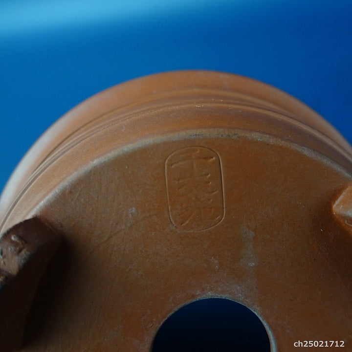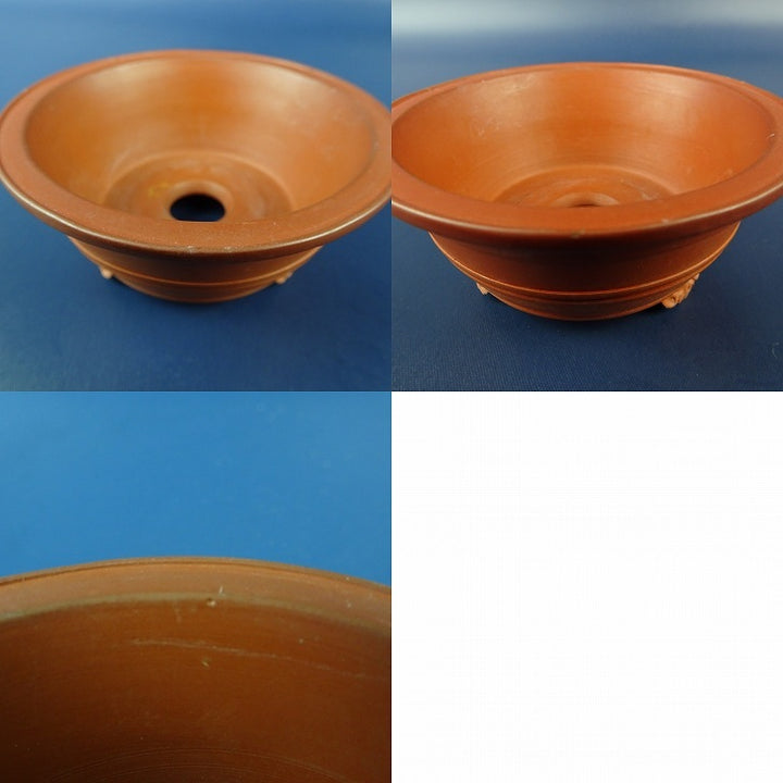 中古 盆栽鉢 常滑 千交苑 小鉢 長辺 約8.1cm 丸鉢 外縁 雲足 中帯 泥物 中古鉢 n1198406880