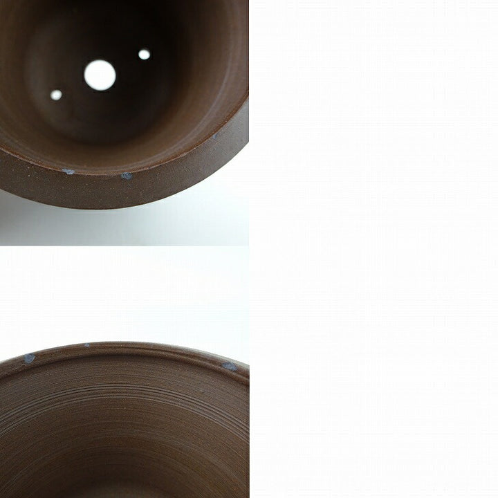 【中古】盆栽鉢 常滑 英明 小鉢 長辺 約 8cm 丸鉢 泥物 現品 中古鉢 本名 清水英明 父・燿山は盆器職人で常滑でも有数の釉薬大家。 製品は約50cmくらいまでの小、中品釉物主で基本的に丸鉢はロクロ、それ以外の盆器は押型で作られる。押型は厚めに型取りして自ら削りなおす。猫足、絵付け、泥色鉢など多彩で一品制作に近いものと量産品がある。...
