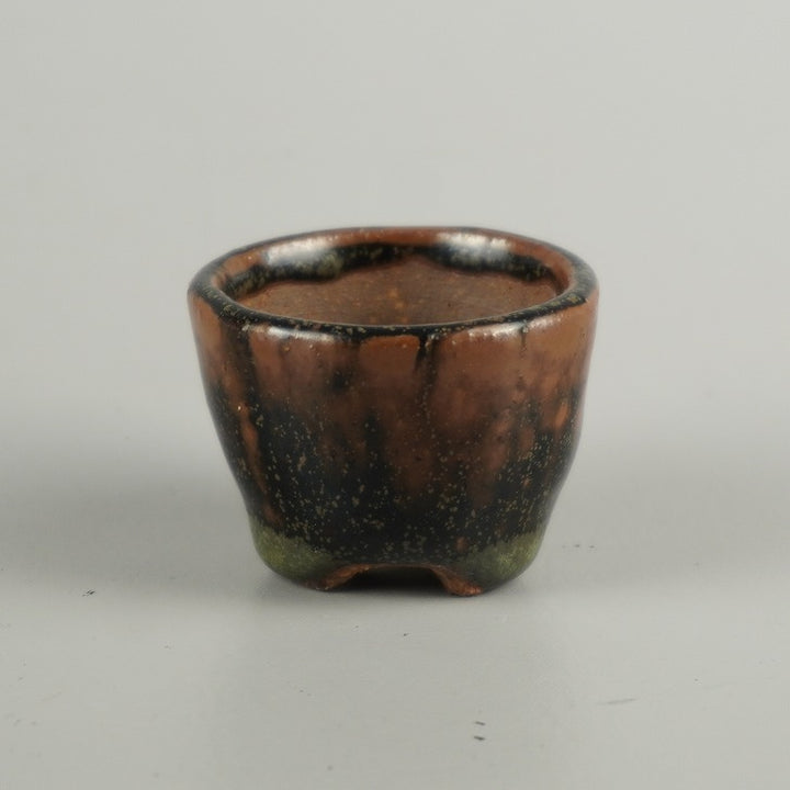 中古 盆栽鉢 松山 豆鉢 長辺 約 4.3cm 丸鉢 釉薬 ミニ鉢 鑑賞 観賞用 中古鉢 1206079484