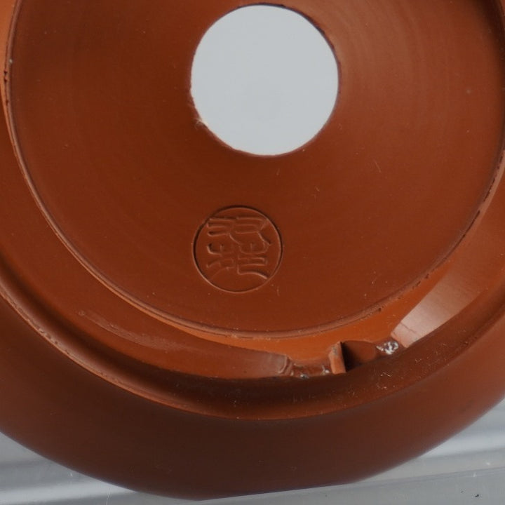 盆栽鉢 羽苑 小鉢 長辺 約 7.7cm 丸鉢 泥物 現品 中古鉢 品名羽苑...