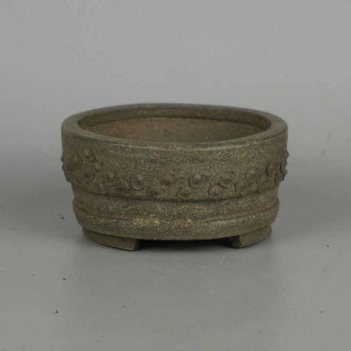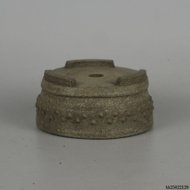 盆栽鉢 舟山 小鉢 長辺 約 7.8cm 丸鉢 鋲打 泥物 現品 中古鉢 品名舟山...