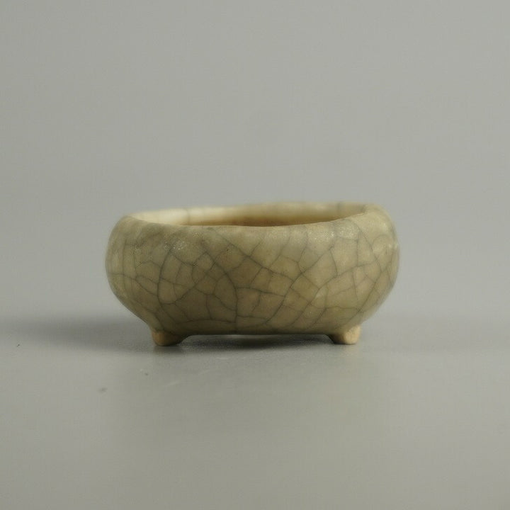 盆栽鉢 落款あり 豆鉢 長辺 約 3.6cm 丸鉢 貫入 釉薬 ミニ鉢 鑑賞 観賞用 現品 中古鉢 品名落款あり...