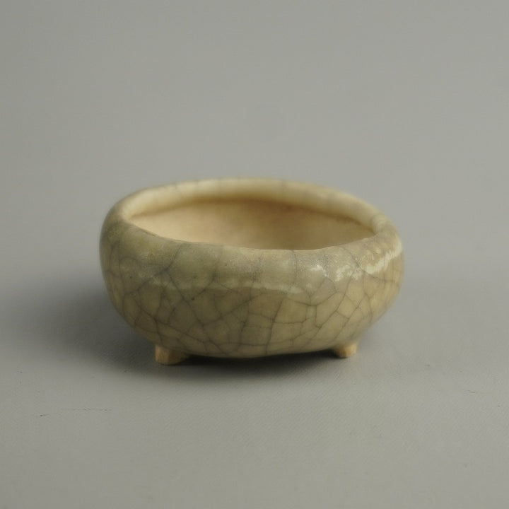中古 盆栽鉢 落款あり 豆鉢 長辺 約 3.6cm 丸鉢 貫入 釉薬 ミニ鉢 鑑賞 観賞用 中古鉢 q1206090495